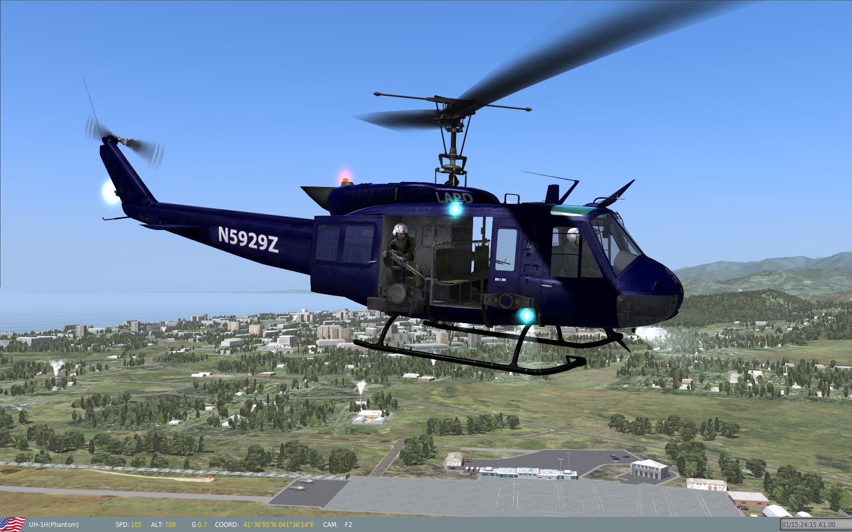 This is a skin for LAPD's Bell 205. Includes, LAPD uniform textures for crew, as well as exterior paint, decals, etc.