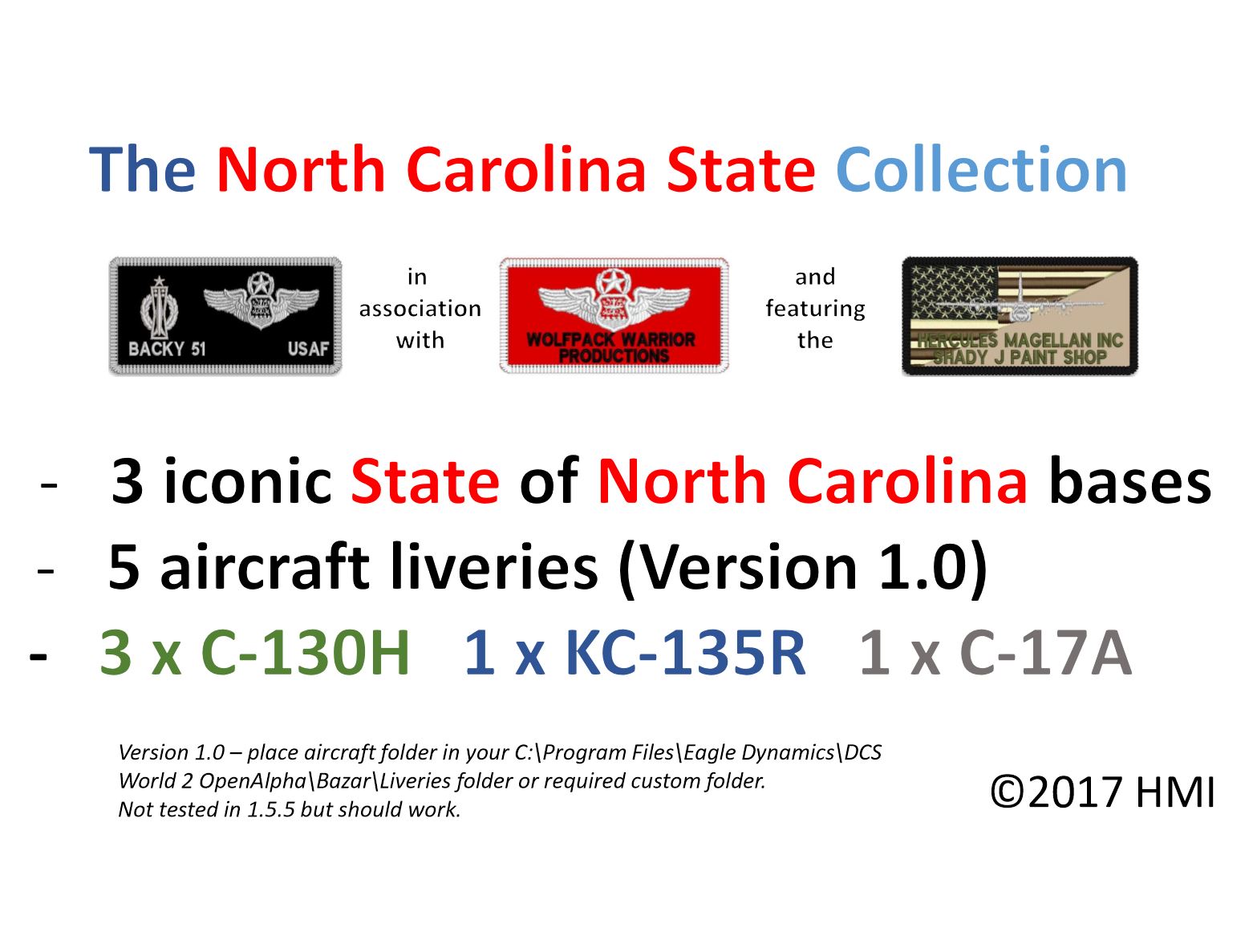 3 ANG and 2 AFRC liveries of 3 aircraft types, (C-130H, KC-135R, & C-17A), from iconic North Carolina military bases: KPOB, KGSB, KCLT.