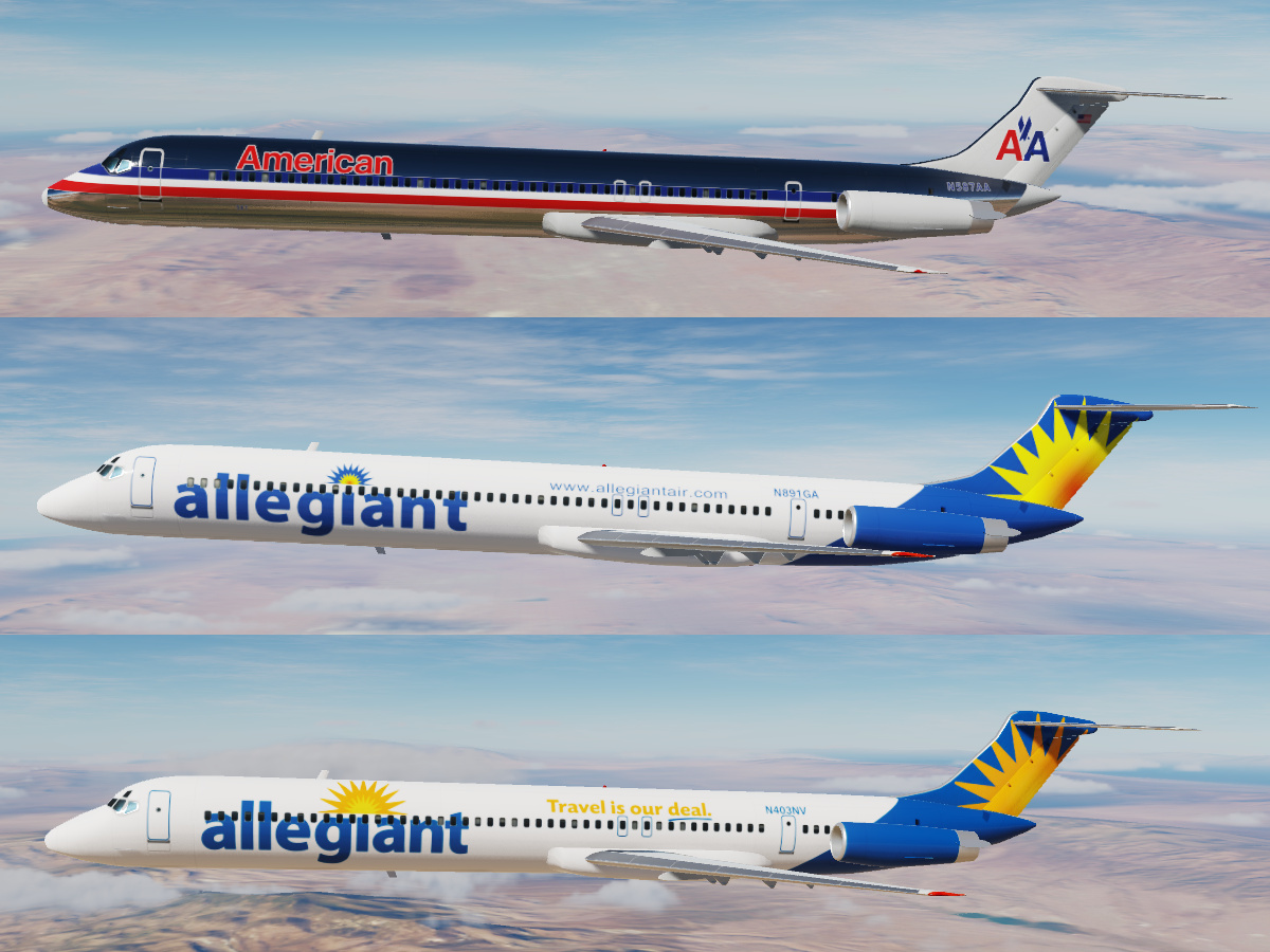 American Airlines 1x MD-83, Allegiant Air 2x MD-83, USAir 2x DC-9 -30 and 1x MD-83 : Total 6x skins.