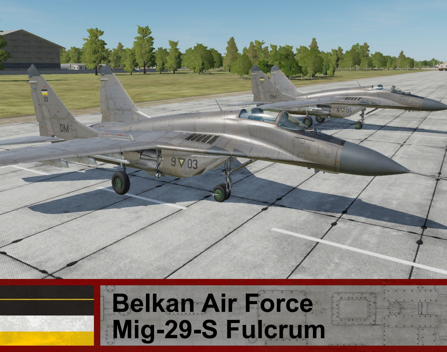 A pack of 3 MiG-29s from Batajnica AB (18201, 18202 and 18203). To install open up the RAR file and from it drag and drop the 18201, 18202 and 18203 folders into your Disk:\DCS World OpenBeta\Bazar\Liveries\mig-29s or into your C:\Users\User\Saved Games\DCS.openbeta\Liveries\mig-29s folder and enjoy. I hope you like this livery, feel free to rate it! As always have a safe and pleasant flight :)