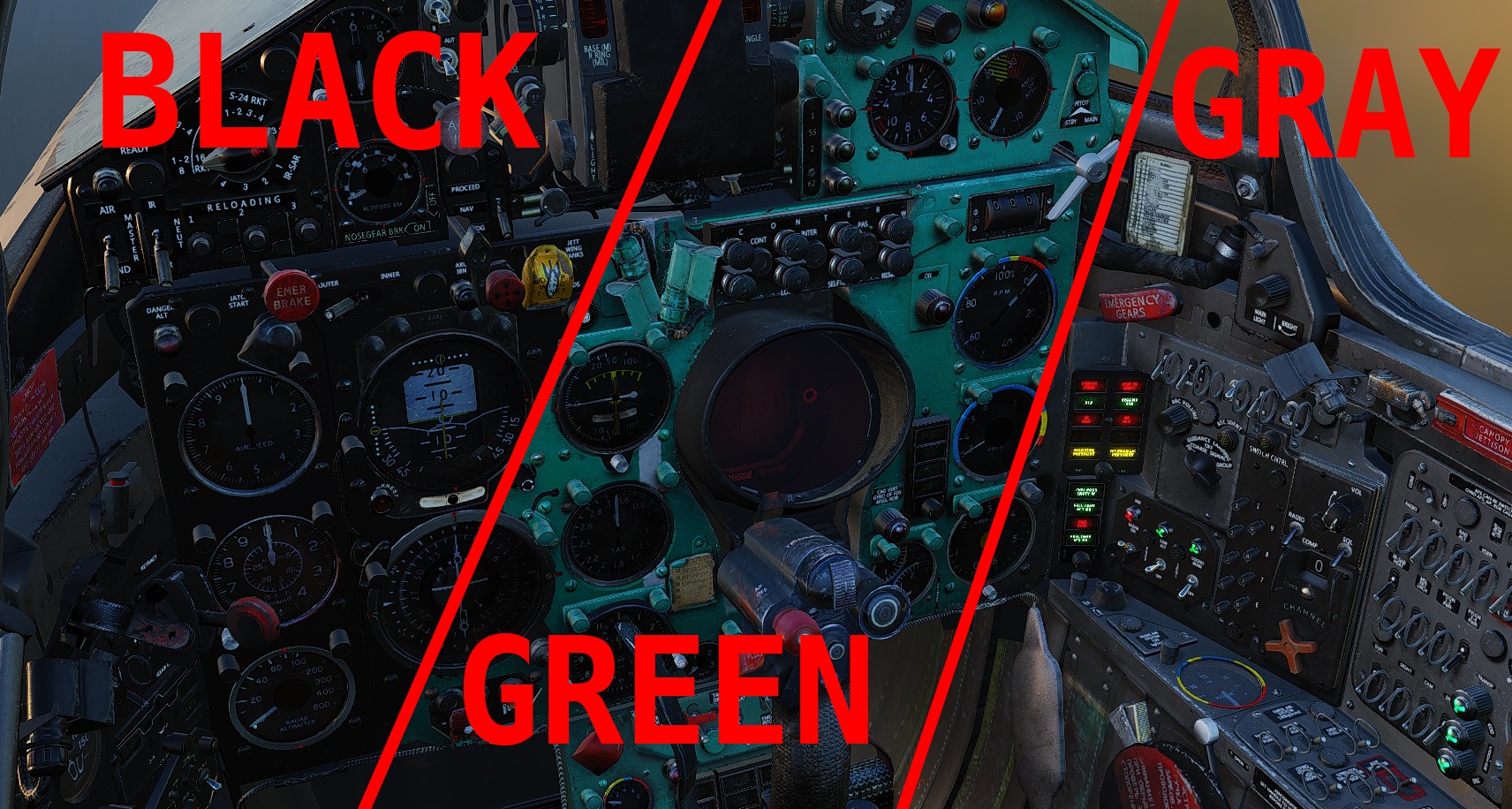 Expanded version of Green cockpit mod by 59th_Reaper and Gray & Black cockpit mod by Mainstay and Snacko updated for current DCS versions.