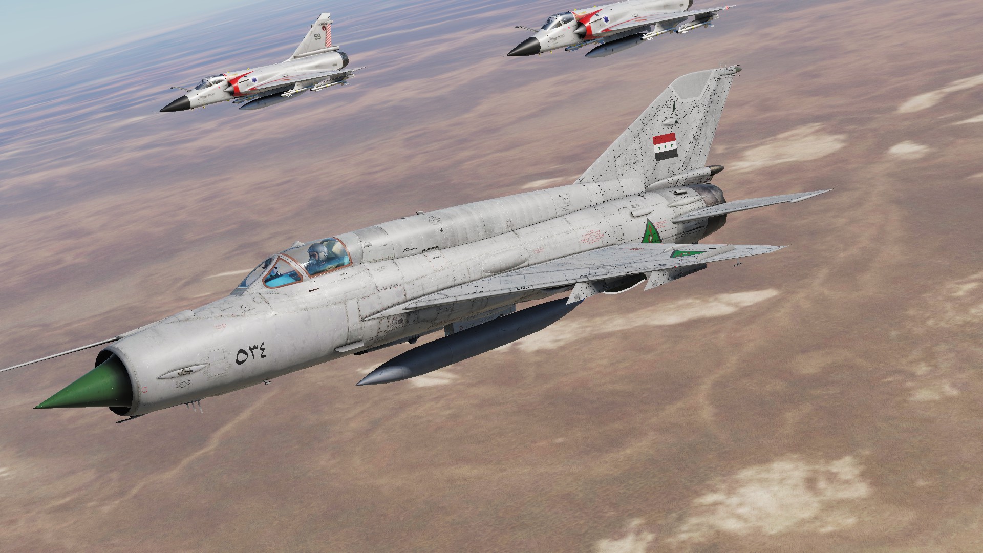 Based off the MiG-21F-13 flown by Iraqi Air Force Captain Munir Redfa, when he defected to Israel as a result of Mossad Operation Diamond