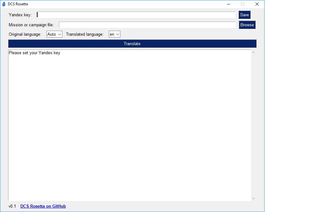 DCS Rosetta is a free application to automatically translate missions and campaigns for the DCS World flight simulator. It uses the free Yandex translation system.