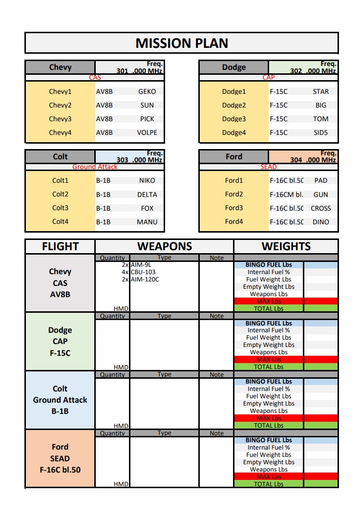 October 11th, 1992. There is a shipment of tanks and other supplies heading to the Russian base, Mineralnye Vody. Your apart of the Mozdok QRF force consisting of 2 F/A-18C Lot 20's armed to the teeth to deal with the Russians. You can edit your loadout however its more of a free roam mission than anything.