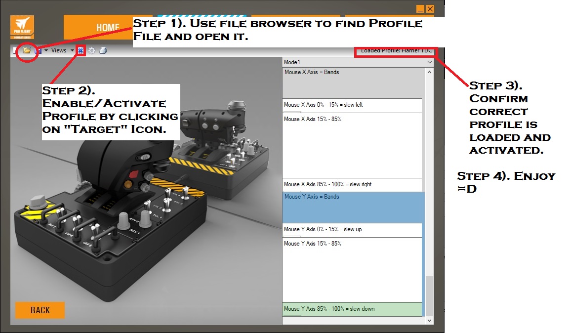 Hey guys, this is my profile I created to allow the x55 throttle mouse nipple to work on RAZBAM's AV8B N/A HARRIER ONLY for the TDC that have default keyboard bindings of [jikl]