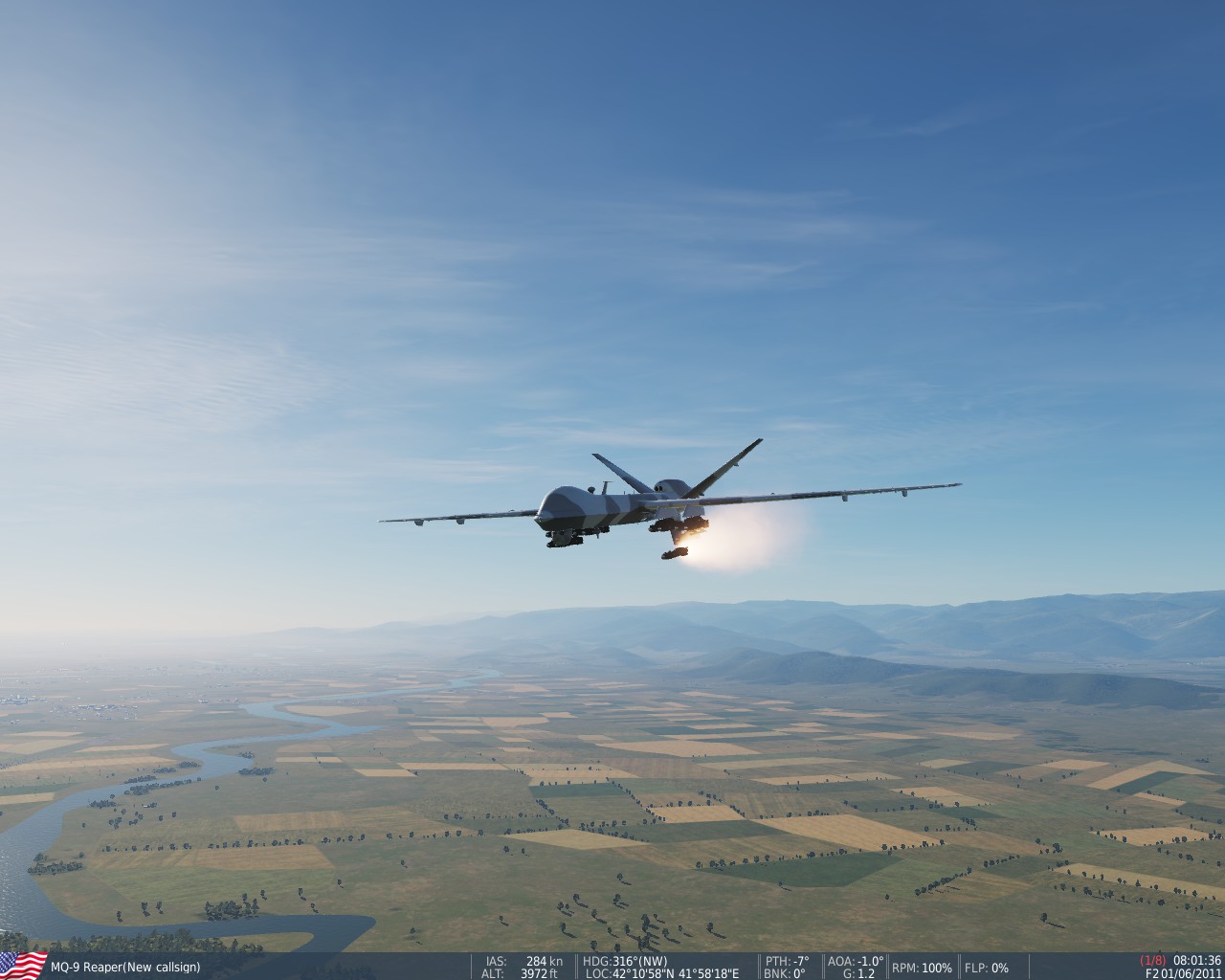 This is a simple flyable mod for the MQ-9. Sadly i could not get the cockpit to work but the HUD still shows up. It uses Su-25 avionics and has the same controls. Bombs don't work but the Hellfire missiles do.