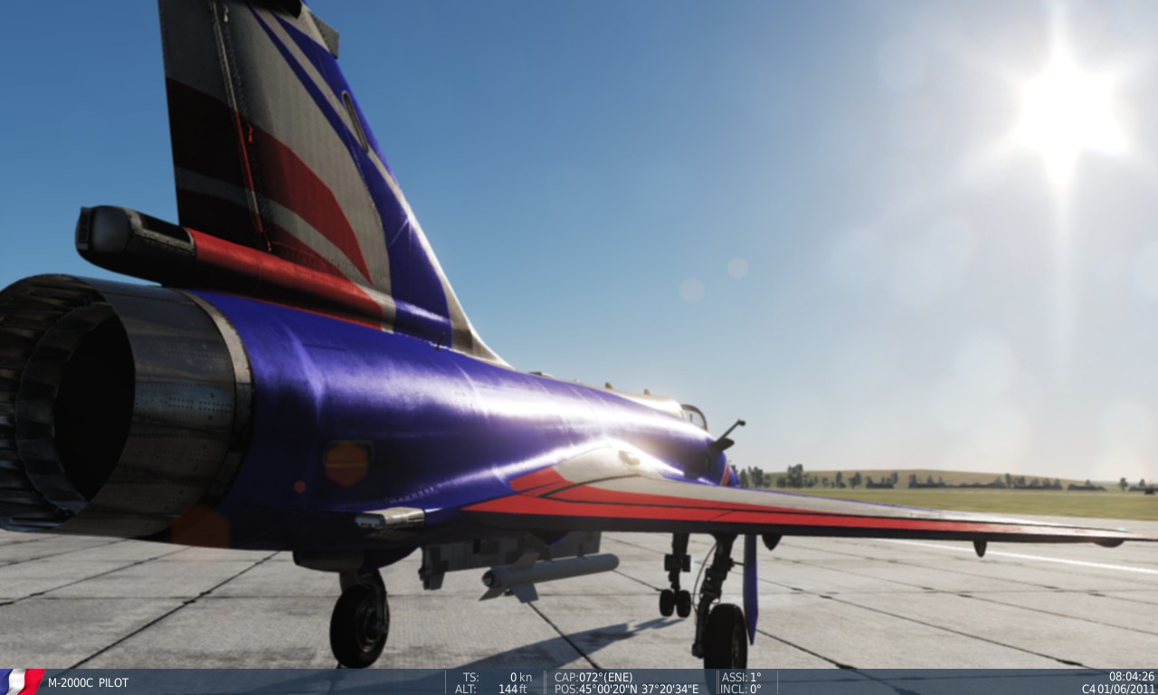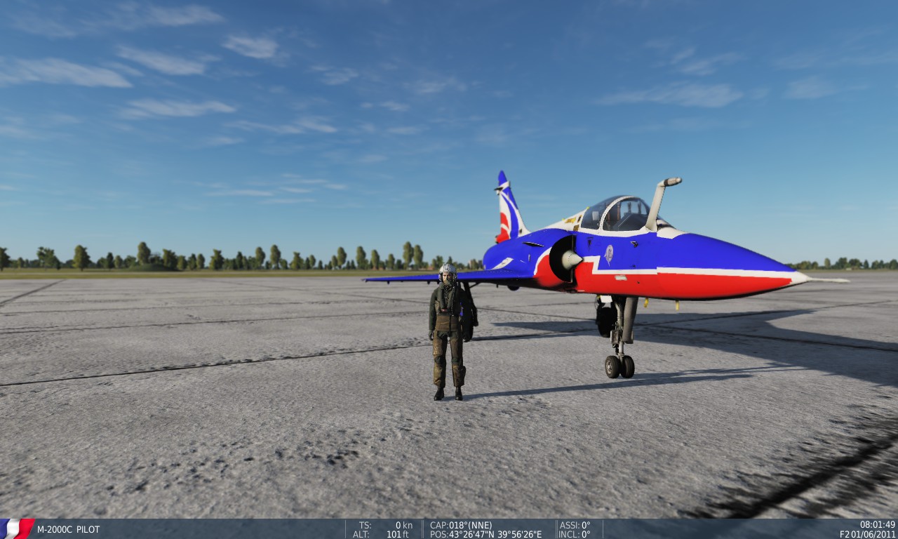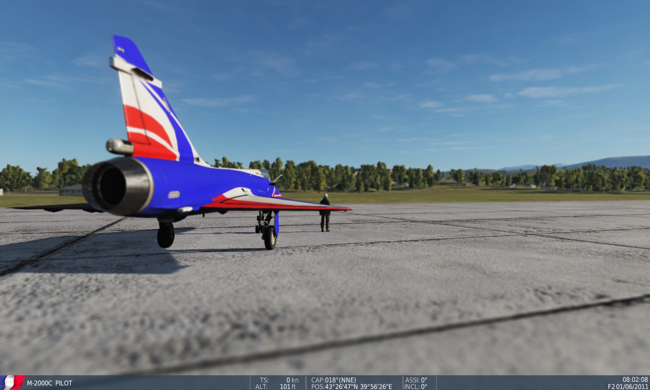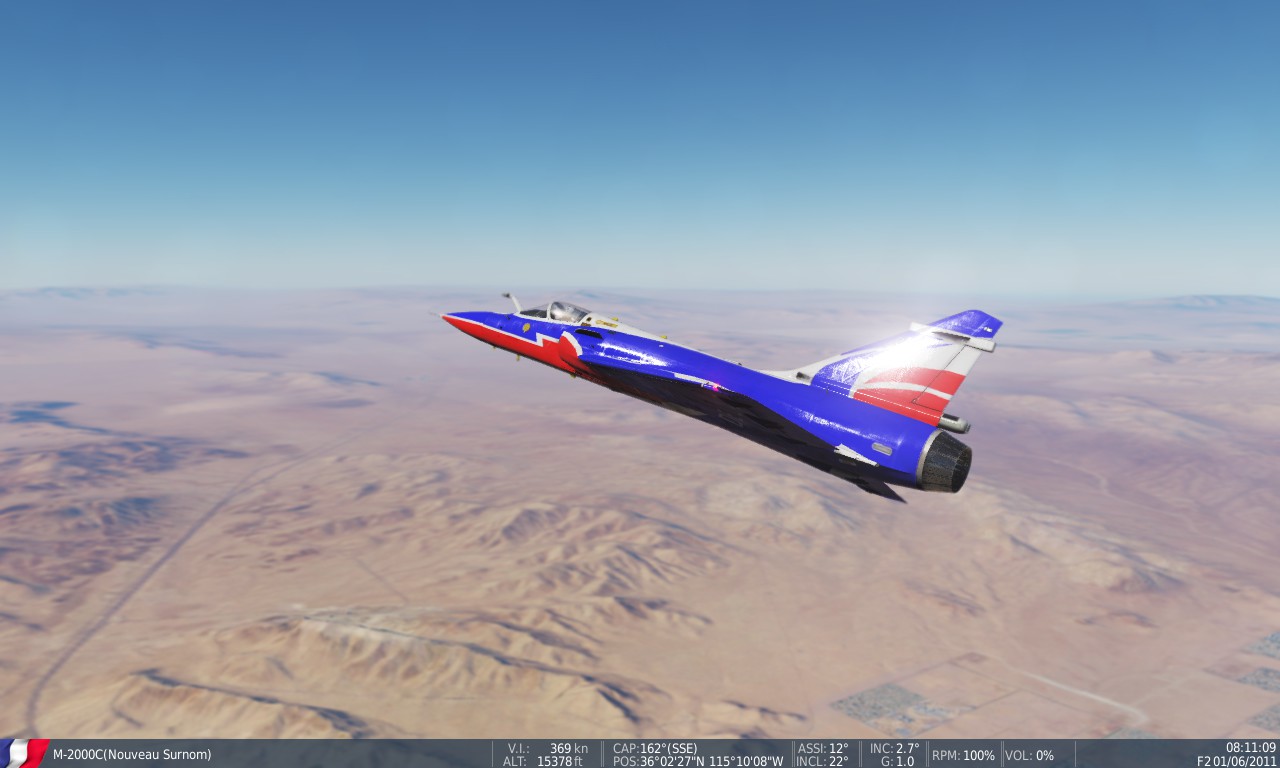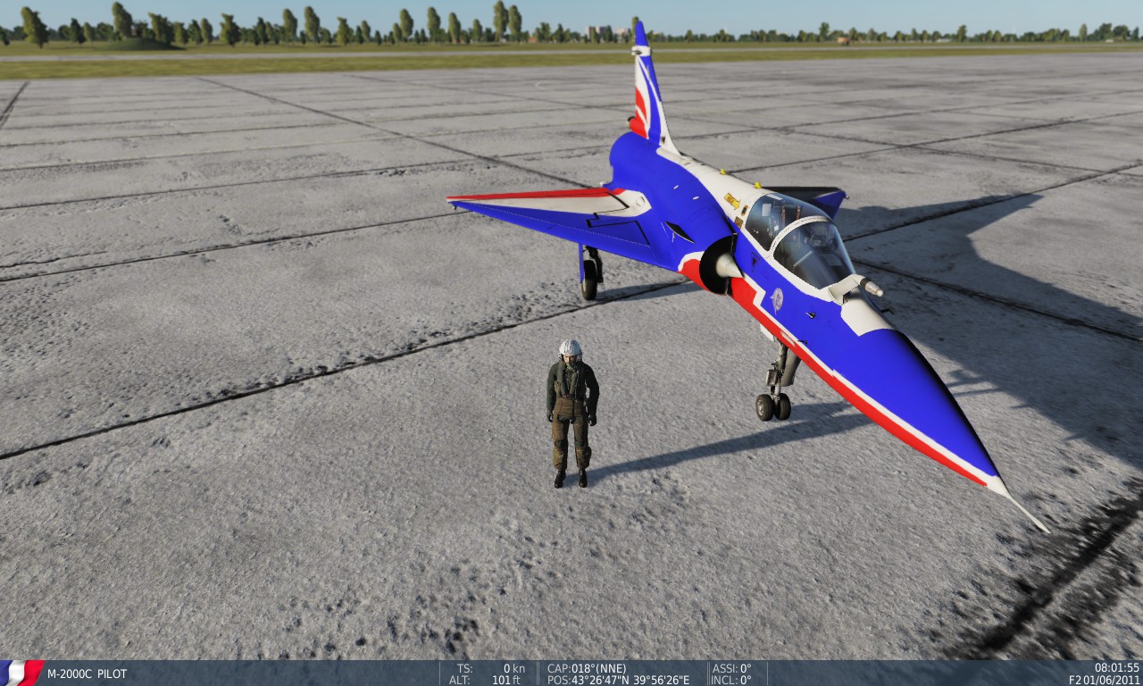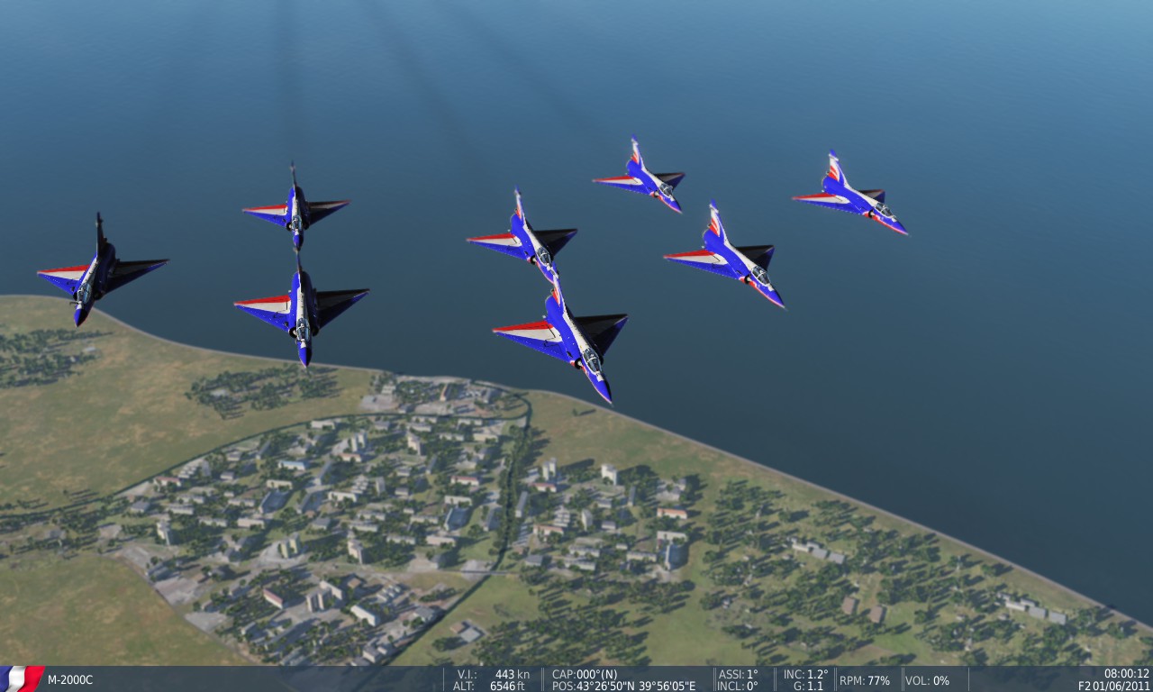 Livrée fictive de la Patrouille de France appliquée au Mirage 2000.