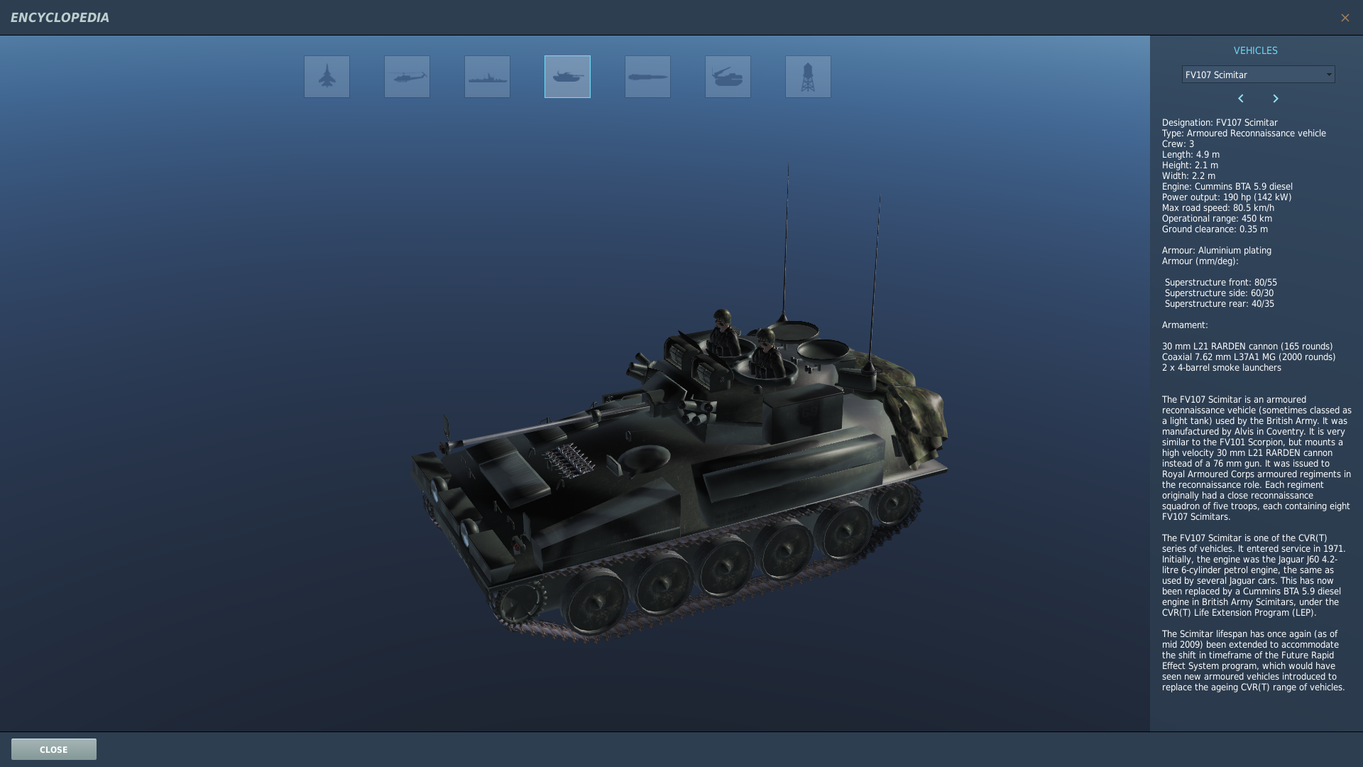 This creates encyclopedia entry for excellent FV107 Scimitar ARV mod.