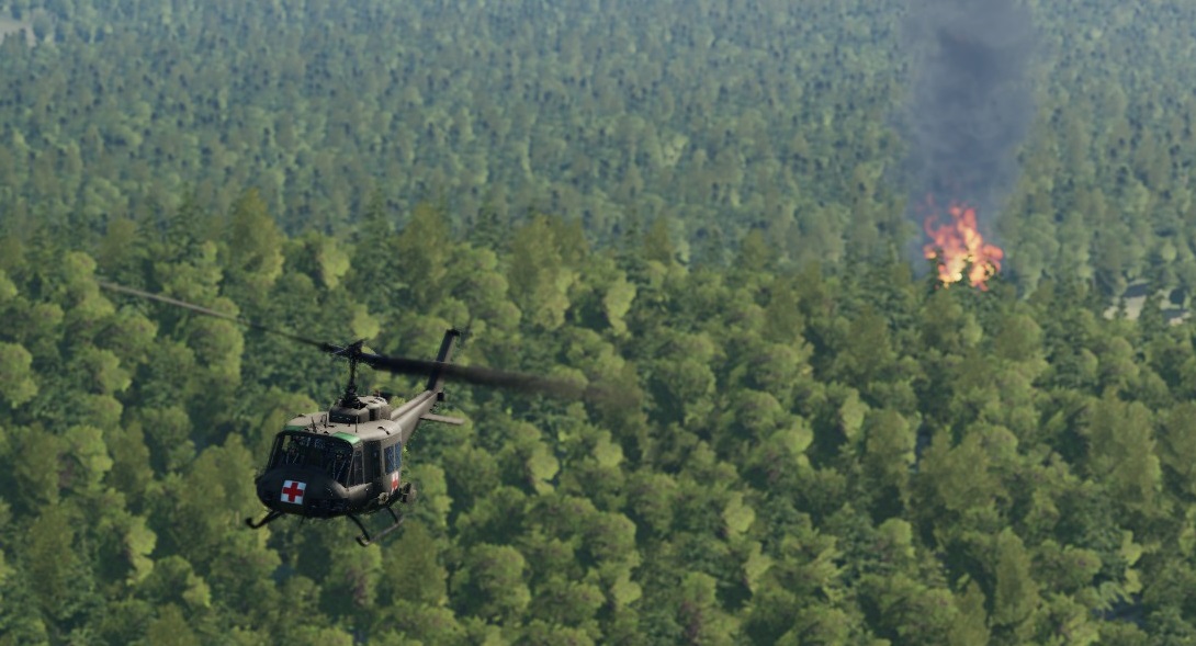 A simple UH-1H Huey rescue mission, being the objective finding survivors of another Huey which went down 30 Kms from the base. This mission can also be played in coop Multiplayer (2 players slots are available).