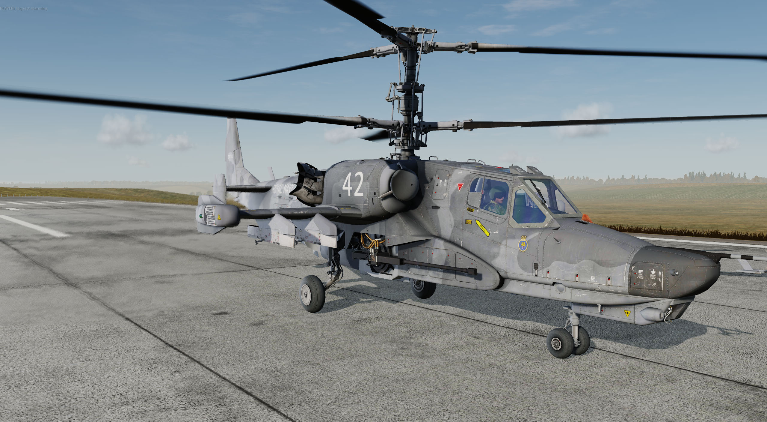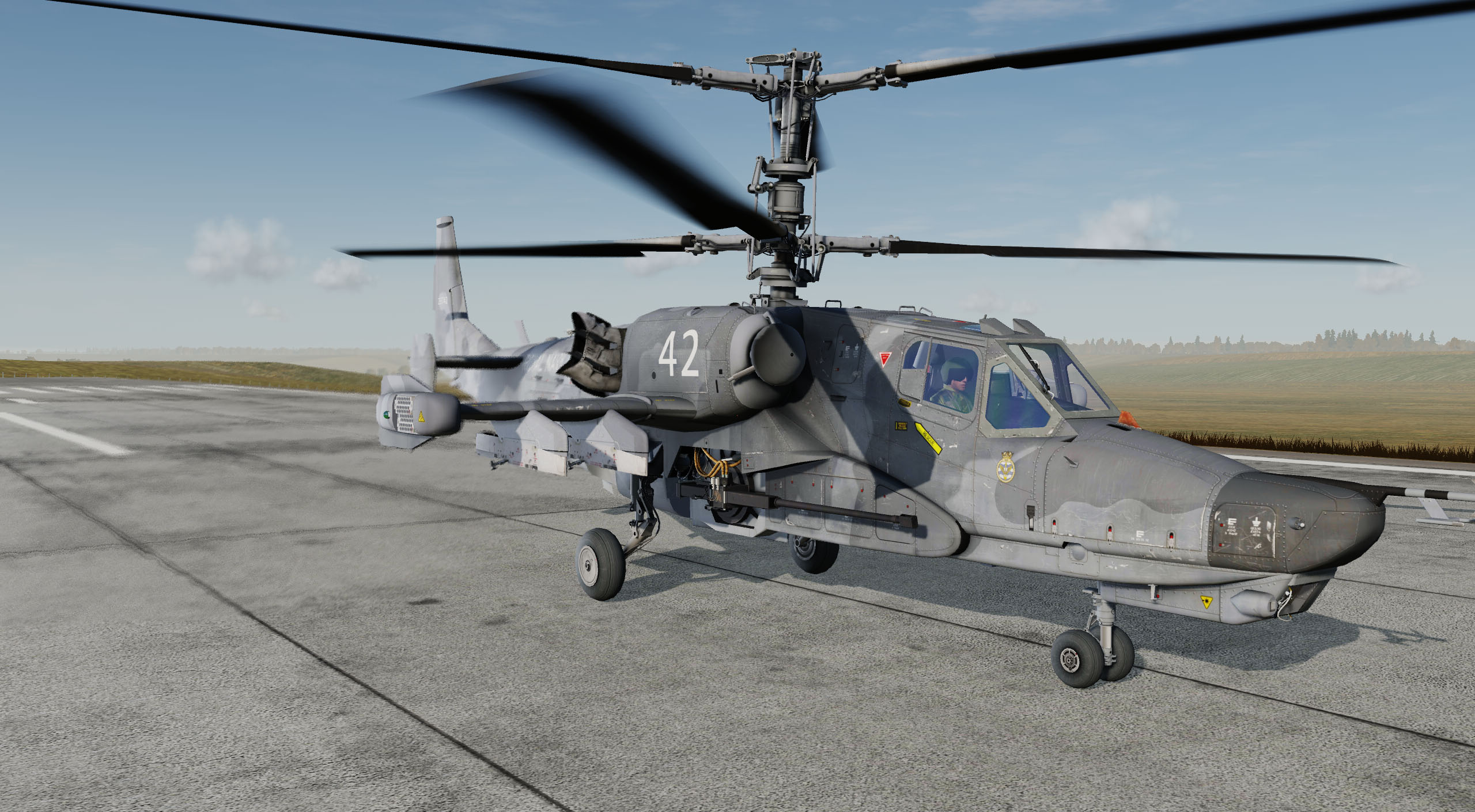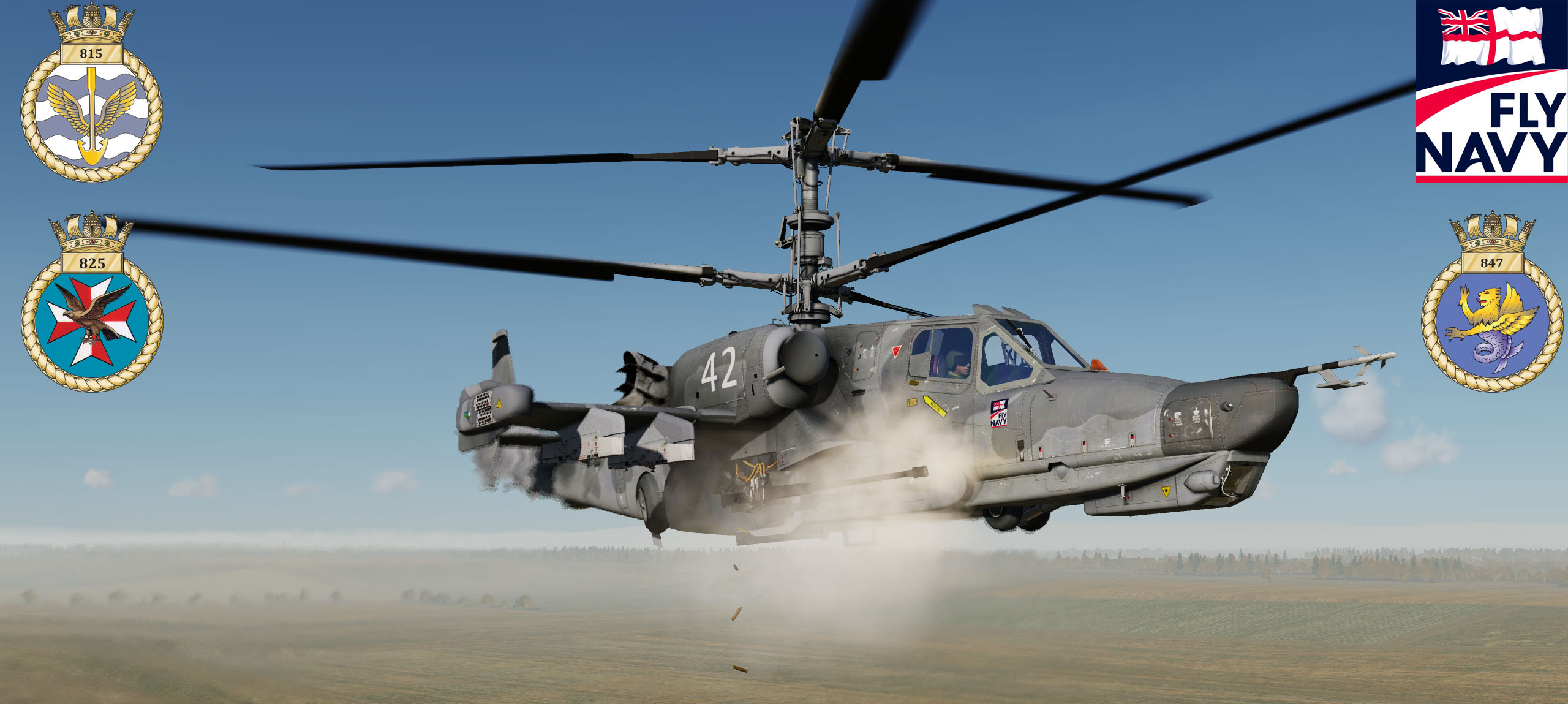A fictional skin for the Royal Navy Fleet Air Arm AH-50 (KA-50) based on the Royal Navy Wildcat paint scheme.