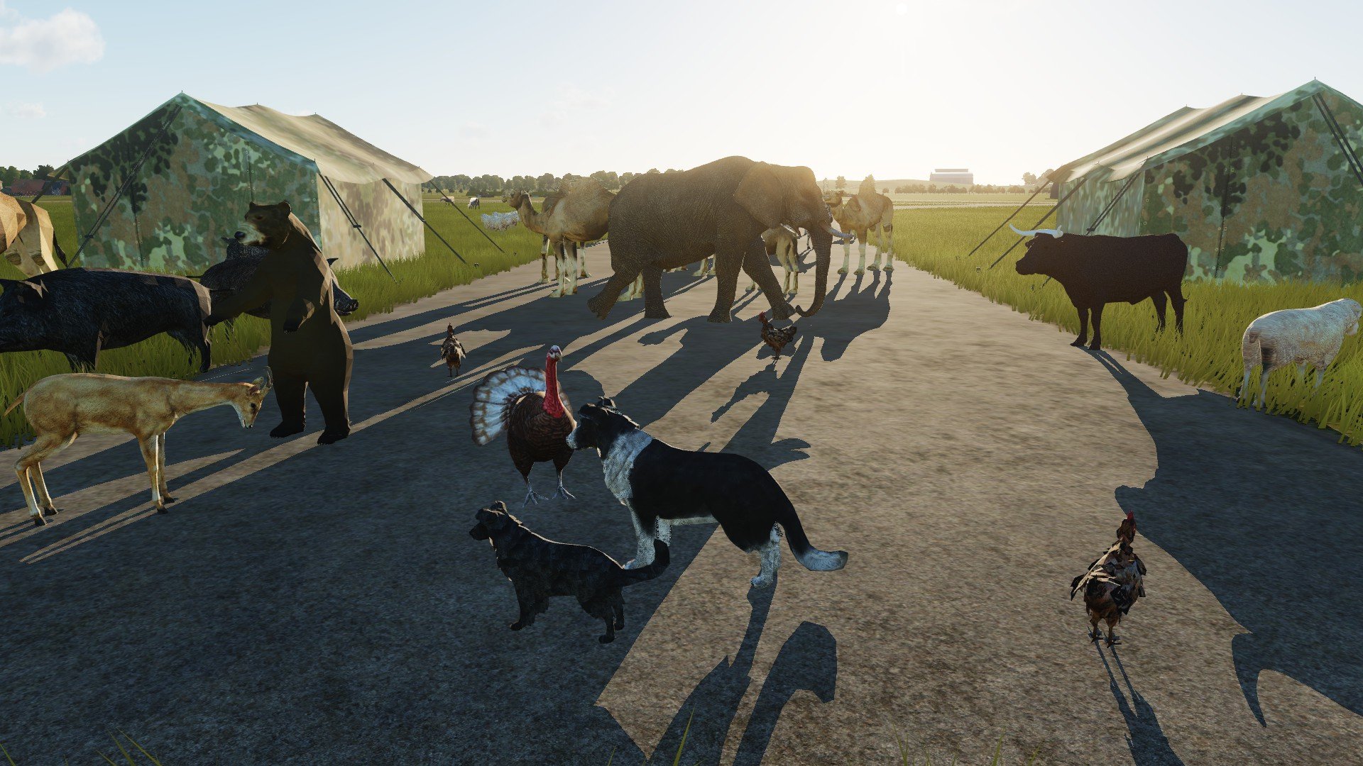 This is a complete pack with a lot of animals for decoration, some are transportable and one "boar in cage" for sling loading.