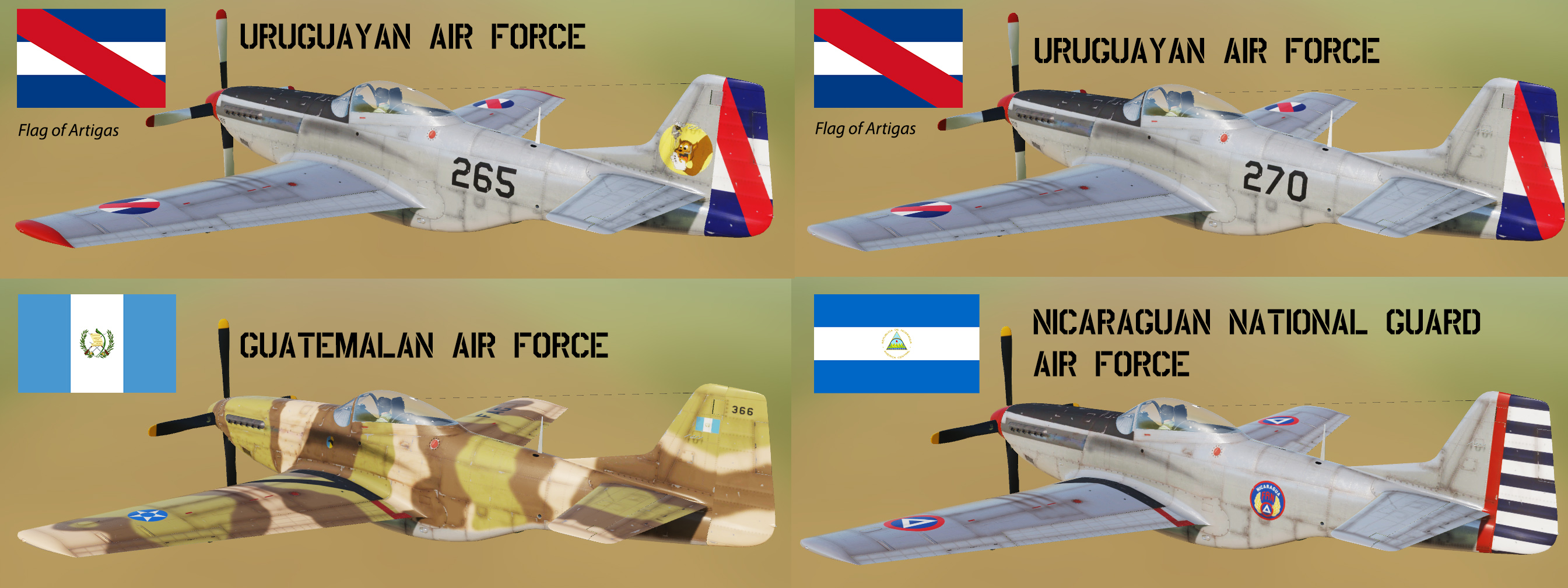 The Uruguayan Air Force used 25 P-51D Mustangs from 1950 to 1960; some were subsequently sold to Bolivia.