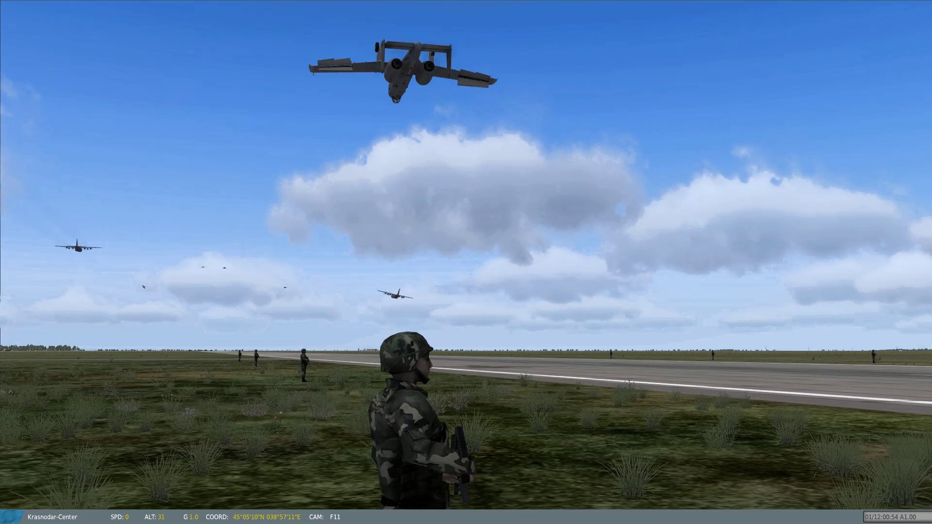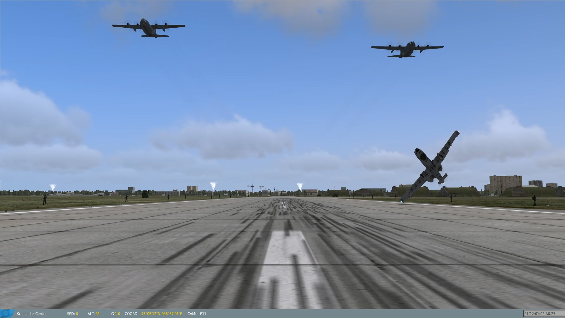 Perform a daring aileron roll at the last second to impress the boys lining the runway! Accompanied by two C-130s and an aerobatic inbound flight of F16 and F/A18. Video here: http://youtu.be/R8hxzO2RkYY