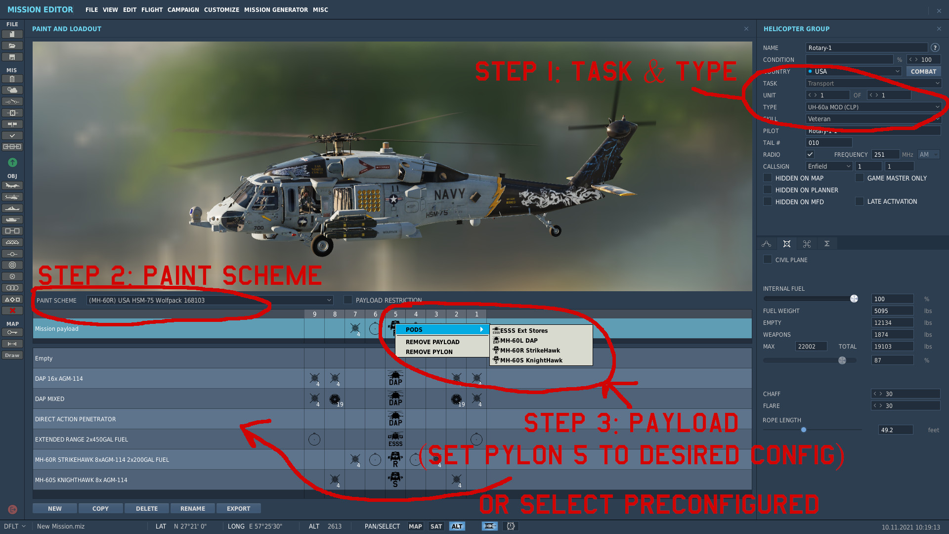 UH-60a add-ons to allow weapon loadouts and appearance modification to simulate ESSS, DAP, MH-60R and MH-60s
