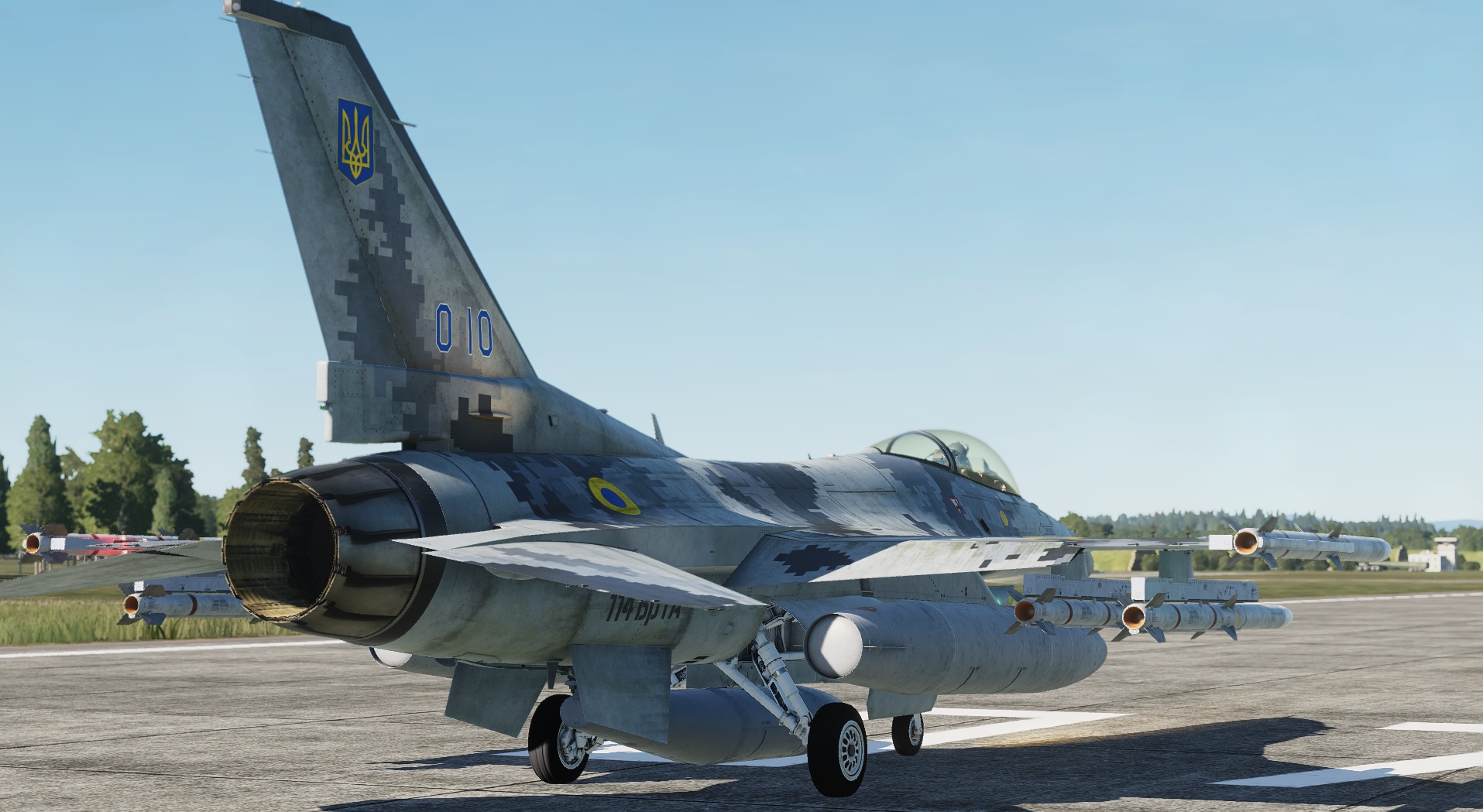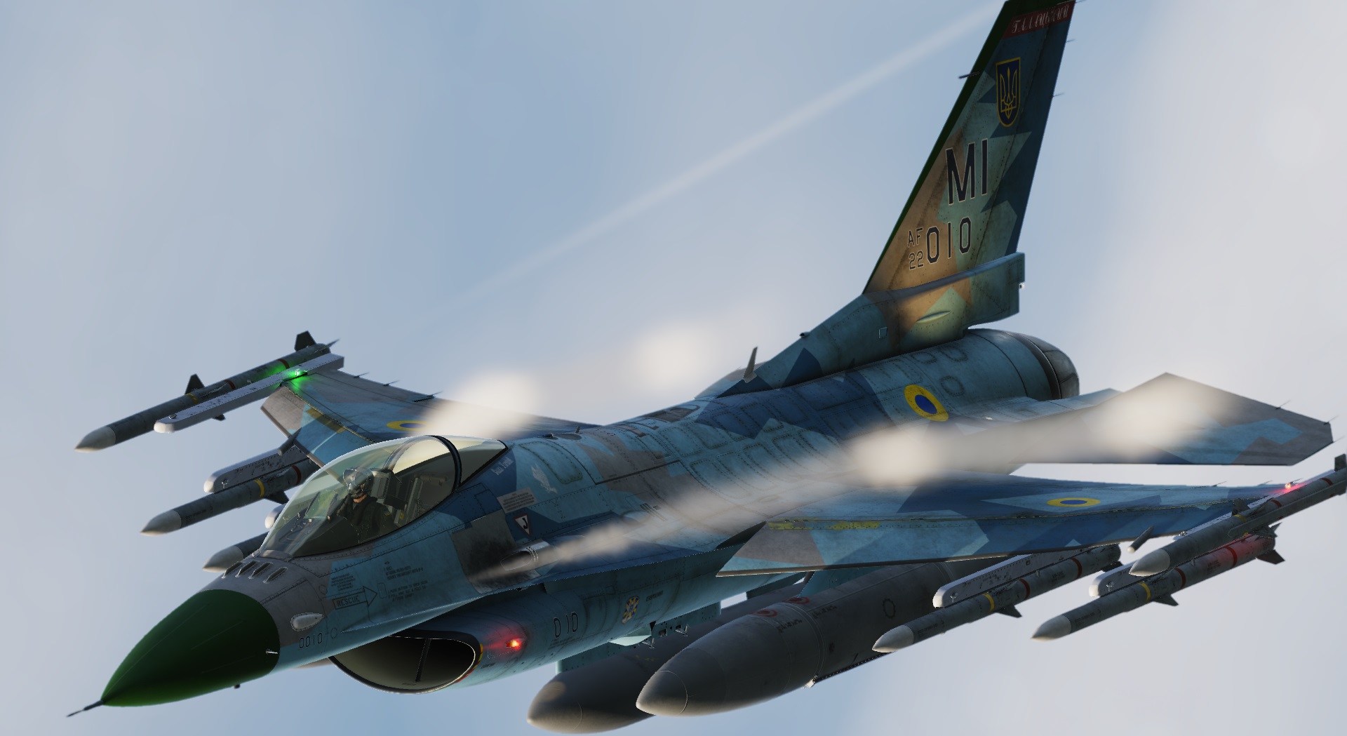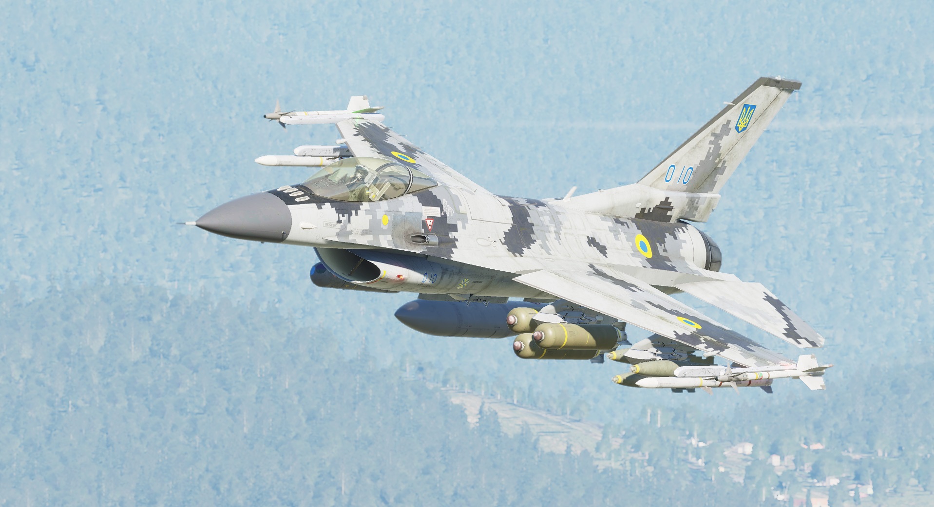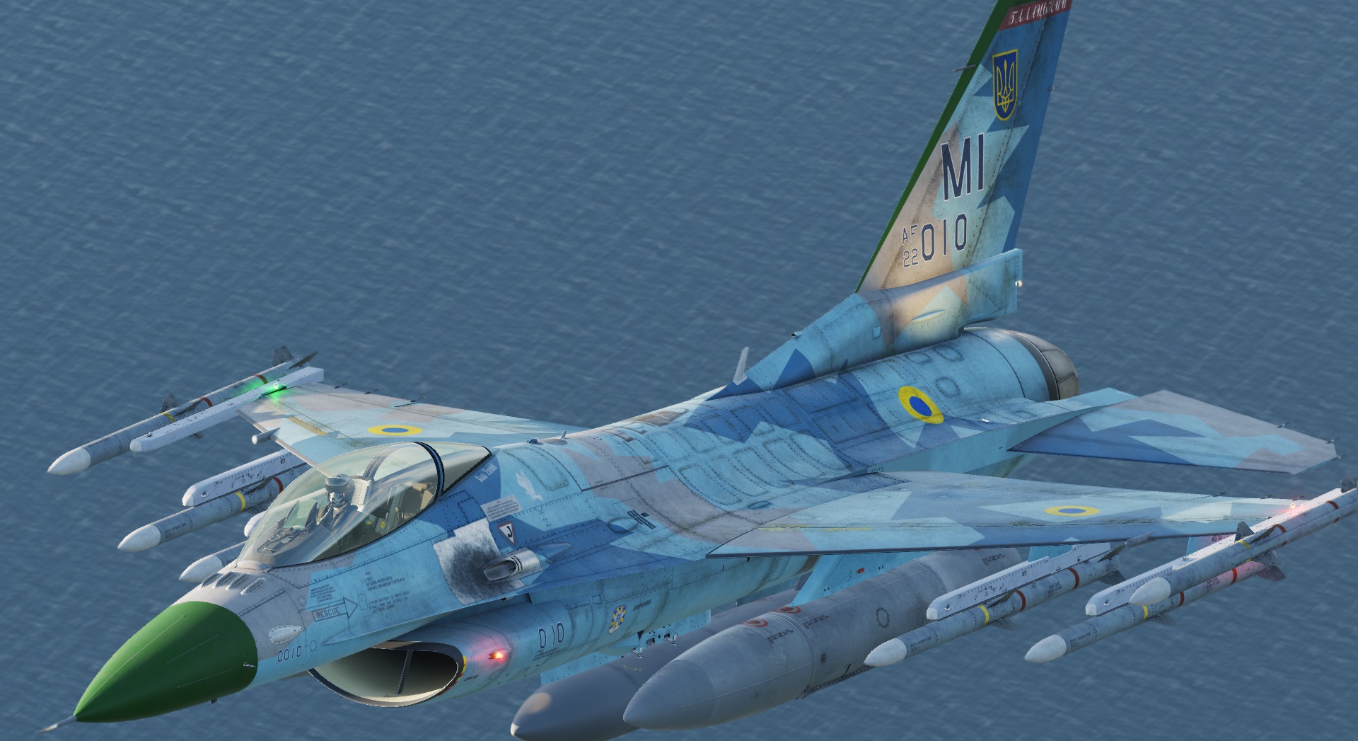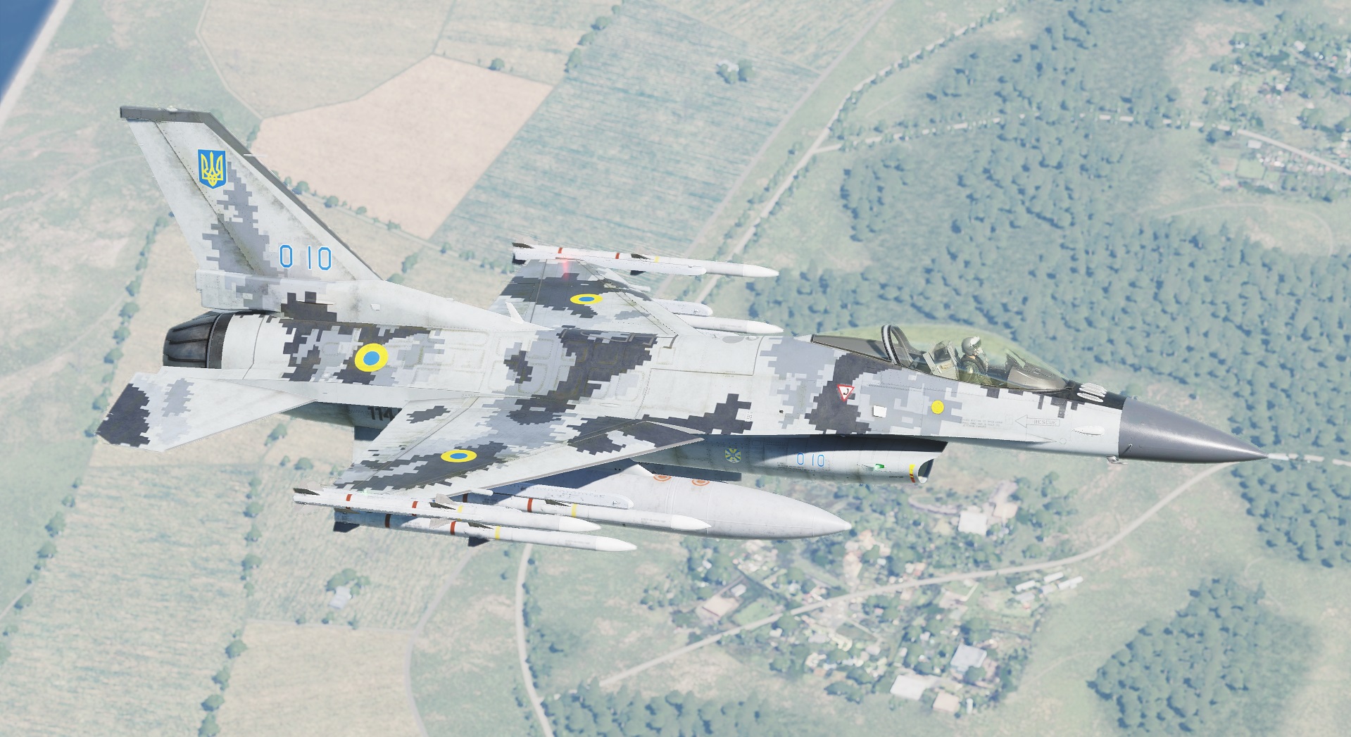 Since DCS doesn't have one, I created a Ukrainian F-16C Livery based on the MiG-29S's.