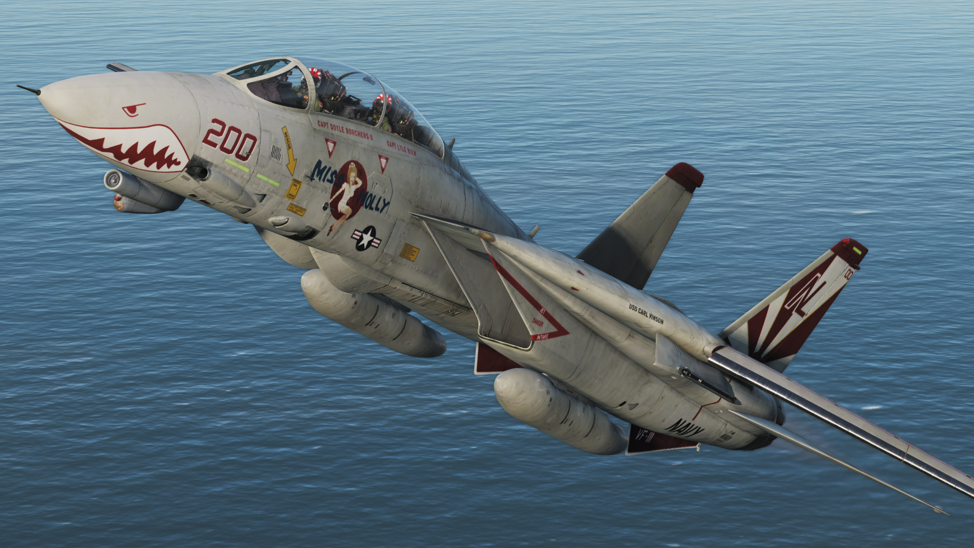 This is a collection of seven skins representing three US Navy fighter squadrons using historical F-14 Tomcat liveries. The squadrons included are: