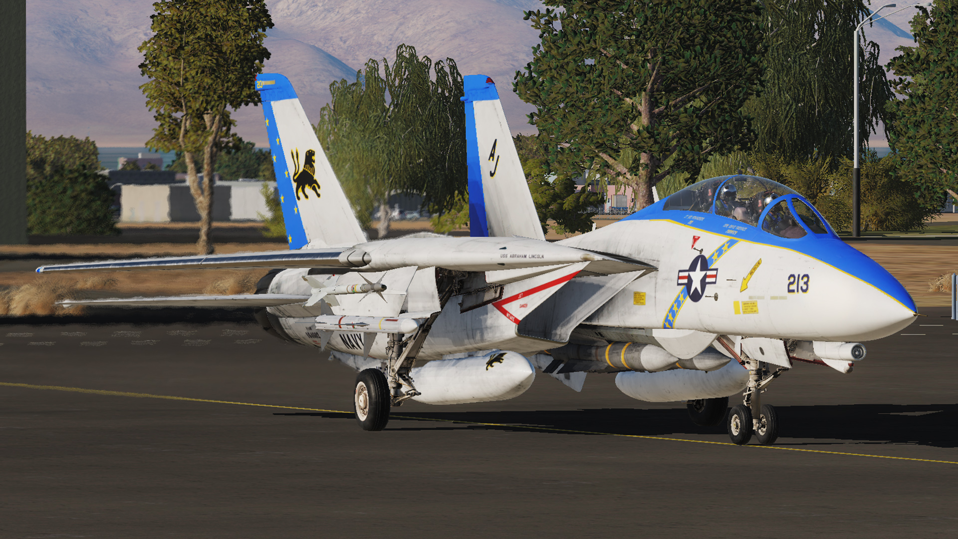 This DCS world livery for Heatblur's F-14A Tomcat represents a VF-213 Black Lions F-14A-90GR around 1984.