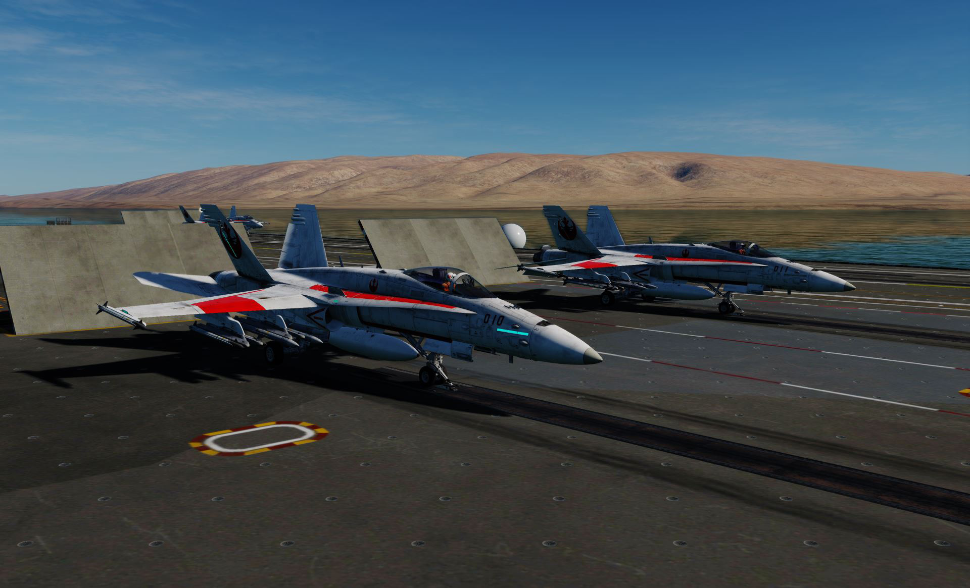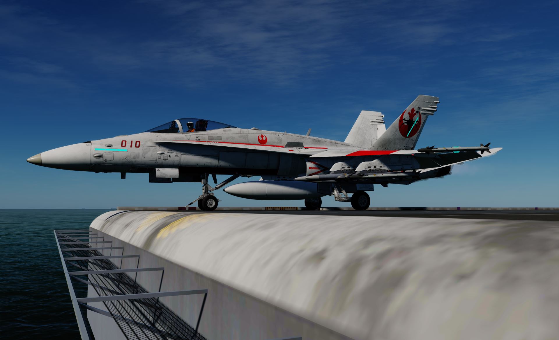 X-Wing inspired skin for the F/A-18C. Can be used by USA and USAF Aggressors. Features Red 1 to Red 10