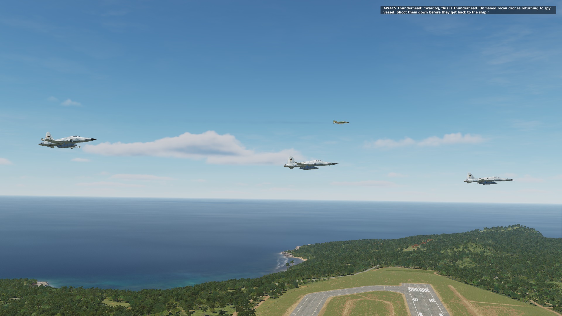 A 5 missions, fully voice acted mini campaign set in the Mariana Islands where you will perform formation flights, air to air refueling, dogfights and air to ground attacks. Note that this campaign uses MIPs (DTC) and will require you to know how to perform an INS fix.