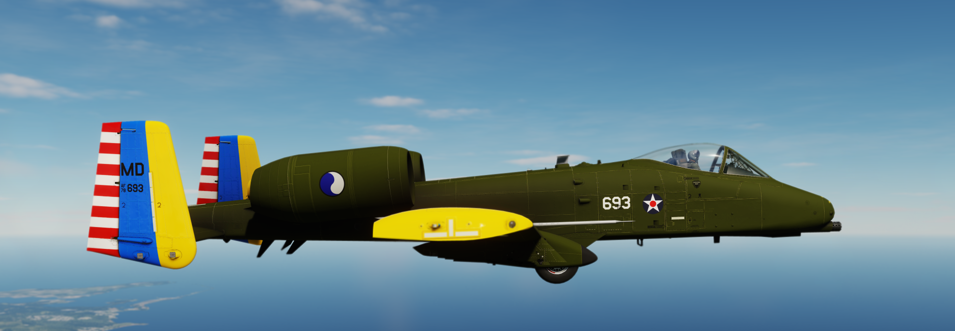 Serial Number 78-0693 was recently repainted in this livery to commemorate the 100th birthday of the 104th Fighter squadron which was founded on June 29, 1921, as the 104th Observation Squadron.  The 104th Fighter Squadron is assigned to the 175th Wing, stationed at Warfield Air National Guard base located in Warfield, Maryland.