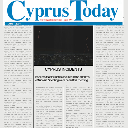 Since 1974 Cyprus is divided between Cyprus pro-Turkish population to the north and Cyprus pro-Greek population to the south. June 2004,Pro-Turkish forces are trying to circle Nicosia with surprised light columms attack. Their hope is to capture the city and win lot more territorial possessions. Cyprus shoppers will certainly try to attack these columns in the suburbs of Nicosia. They are equiped with Mi-35P Hind and SA-342 Gazelle. 134.Filo equiped with F-5E-3 Tiger is ready to support massively North-Cyprus attack. A Greek Mirage 2000C squadron is deployed on Paphos airbase and will be the main threat.