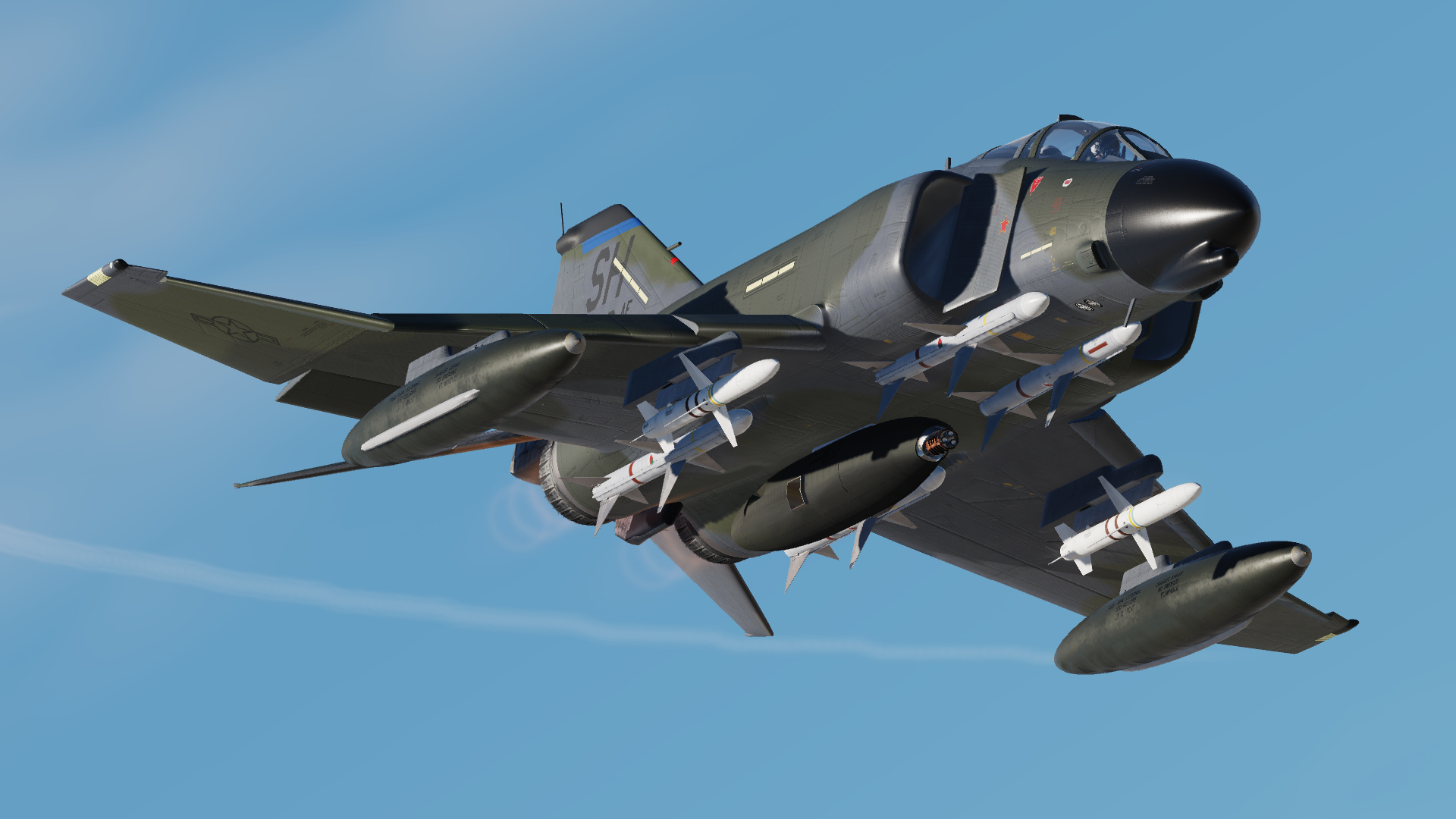 UPDATE: FIXED AN ISSUE THAT CAUSED THE FORMATION LIGHTS TO NOT WORK. A replica of F-4D Phantom II 66-7750 from the 465th Tactical Fighter Squadron/507th Tactical Fighter Group based out of Tinker AFB, Oklahoma, circa 1985. Made from some reference images and with only some very minor errors, it is an accurate recreation of this bird as it flew in 1985 for the Air Force Reserve with their gorgeous Euro 1 camouflage. It has: Correct markings, reworked base textures that now include some missing heat-resistant panels, proper but basic roughmets that tie everything together and even a custom USAF-accurate SUU-23 gun pod with its textures.
