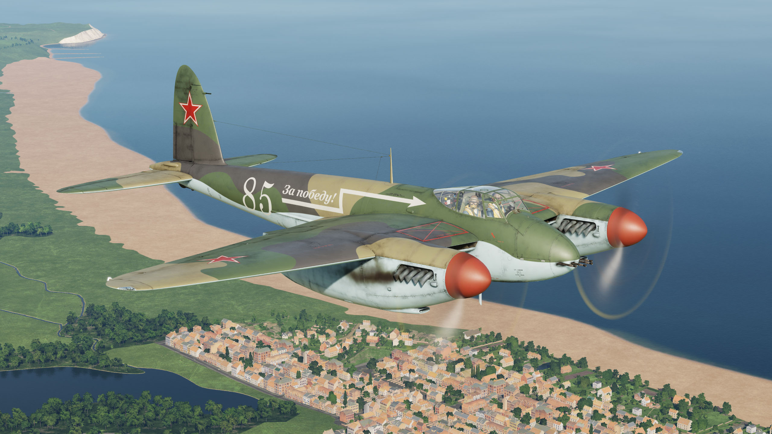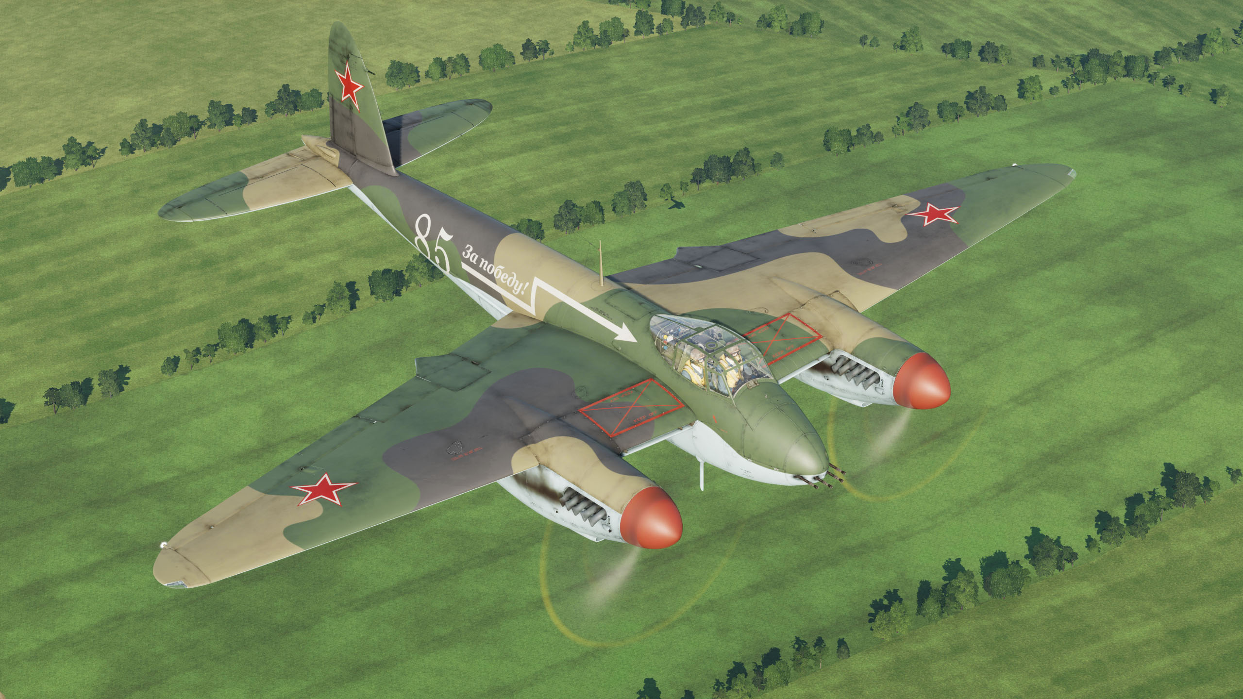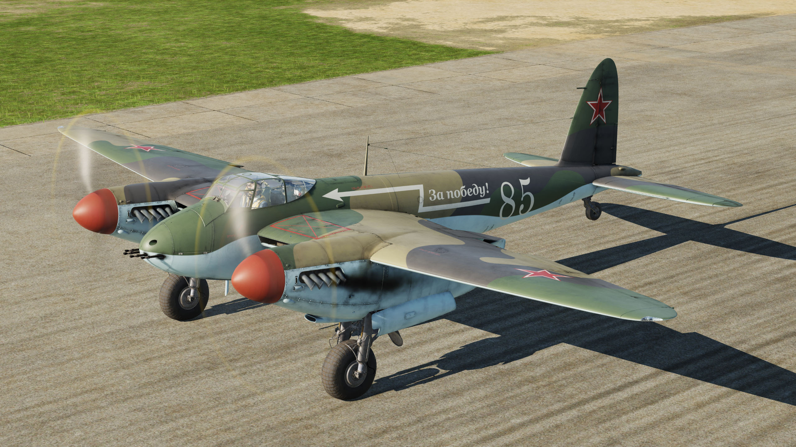 Mosquito FB VI Soviet Air Force. Used a 4-color paint scheme for the Pe-2 bomber. Dynamic side numbers. The inscription on the fuselage "For the victory" (a similar inscription was often applied to some aircraft of the Red Army Air Force)