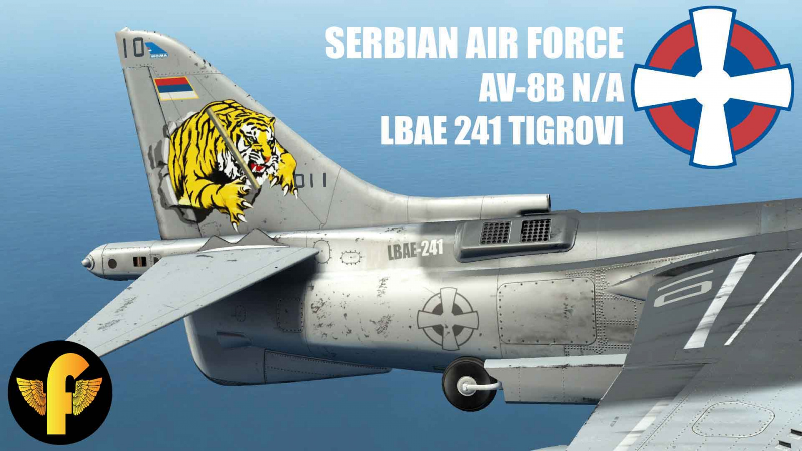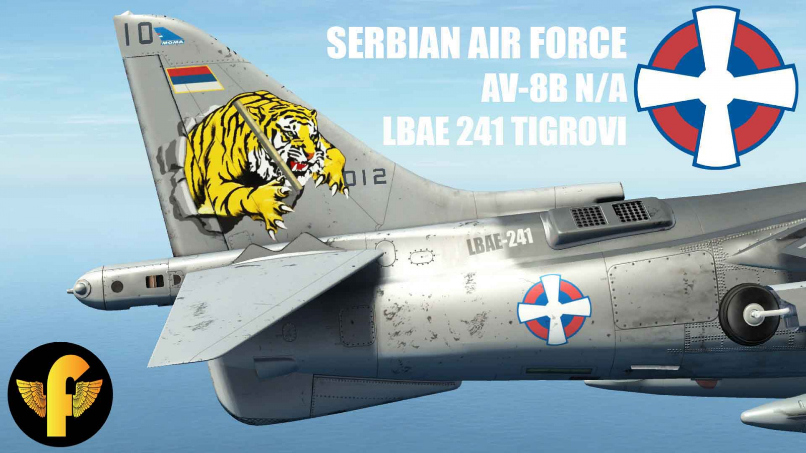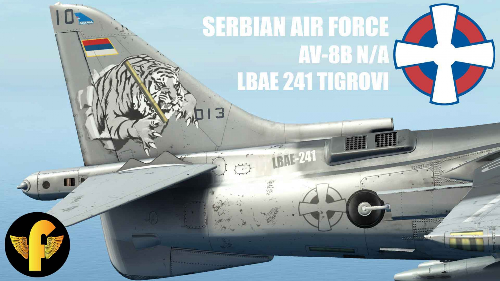 Fictive skin of Serbian Air Force for Razbam AV-8B N/A, colored amblem tail.