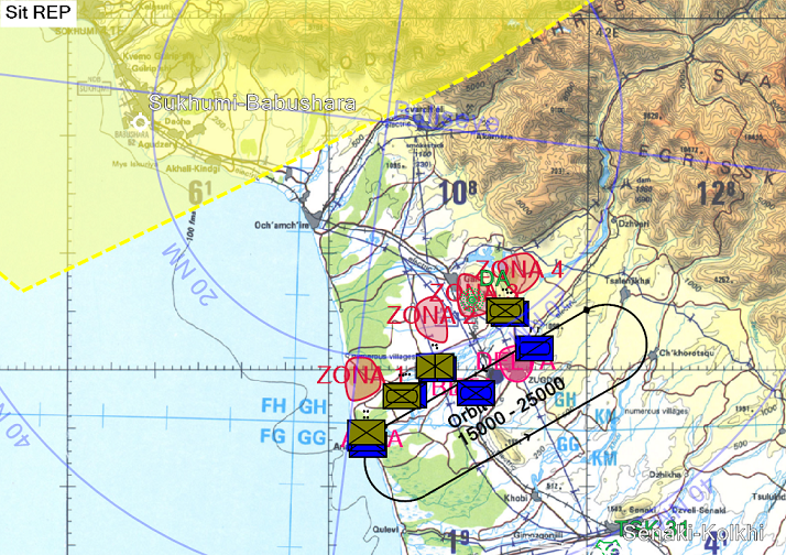 Toda la frontera con Georgia está bajo control de los rebeldes, las únicas guarniciones leales al gobierno son los acuartelamientos fronterizos, estos aun permaneciendo en situación de alerta se mantiene sin realizar provocaciones a las fuerzas georgianas y de la coalición.<br /><br />