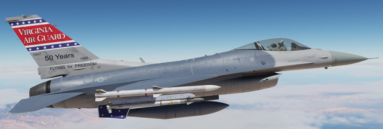These are repaints of aircraft assigned to the 192nd Fighter Wing, Virginia Air National Guard, at Richmond International Airport. A weathered everyday livery as well as the 50-Year commemorative livery are included. The 192nd was the first ANG unit to operate the F-16C/D in 1991. In 2007, it became the first ANG unit to convert to the F-22.