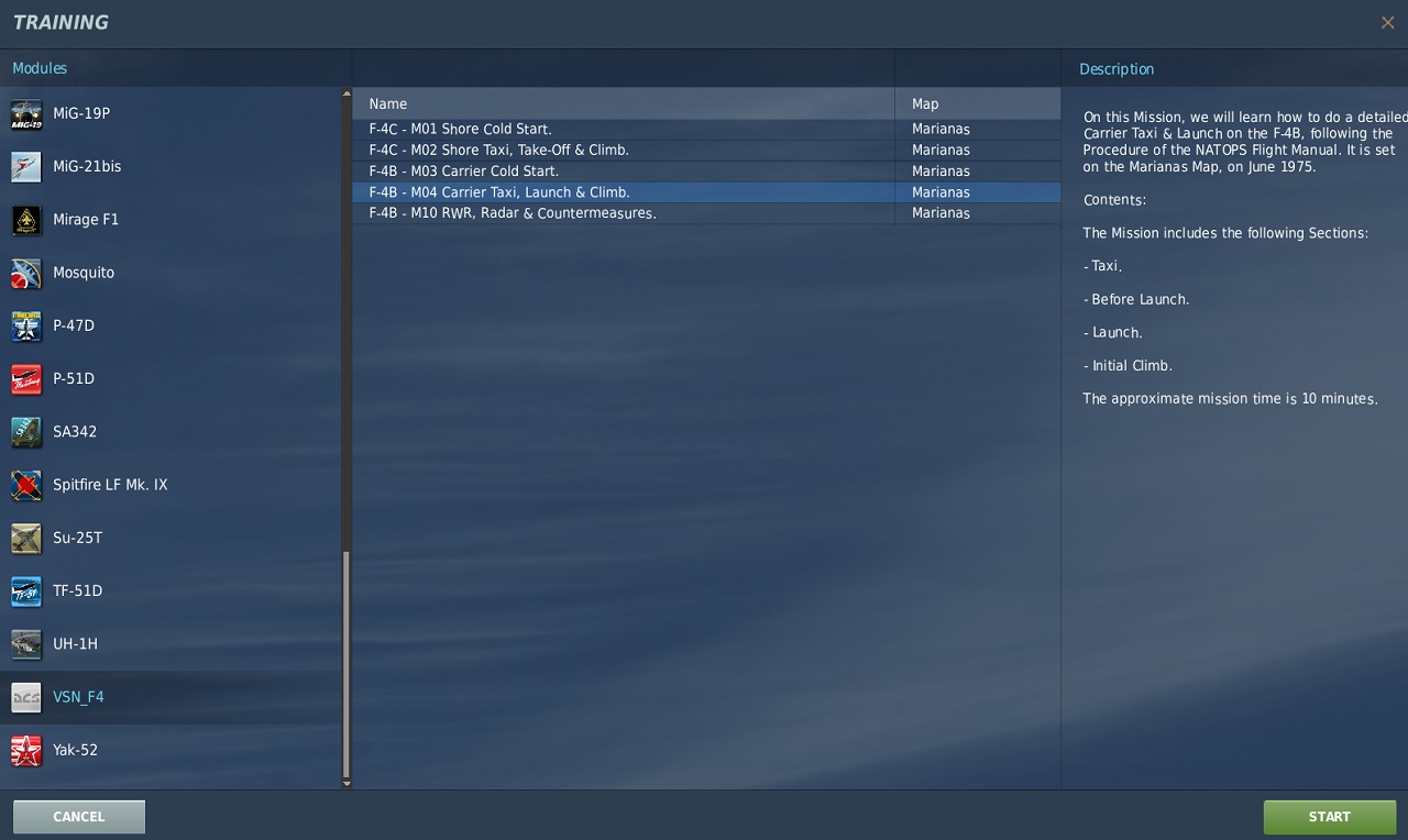 I made three versions of the mission: one for Sinai, another for South Atlantic and a third for the free Map of Marianas. They are identical and only differ on some little details. I added them to the existing training menu, and this means that the files go onto the DCS program folder. If you are uneasy about this, you can manually save the files at /Saved Games/ to run as standard missions instead of using the DCS Training Menu.
