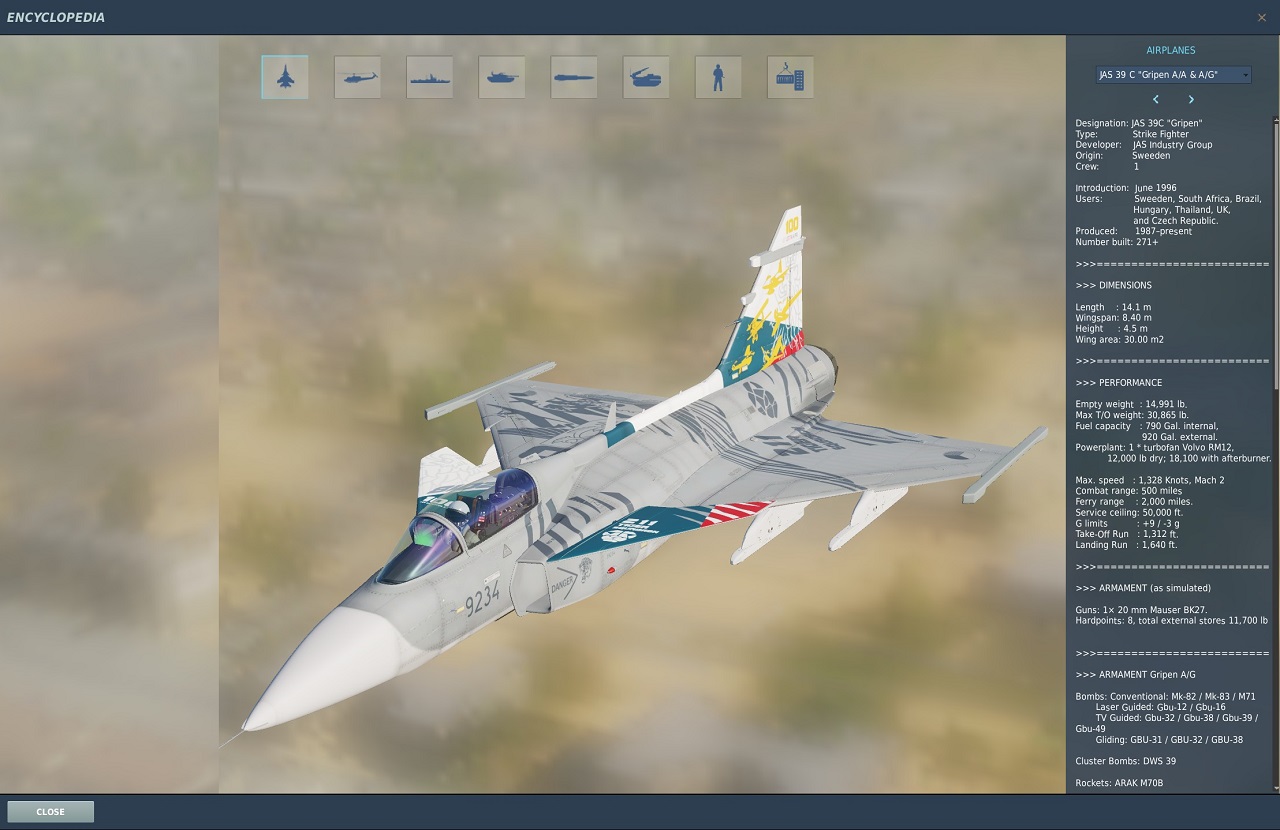I also added a Gripen entry for the DCS Encyclopedia, not related to the missions, just wanted the Mod to feel more complete.