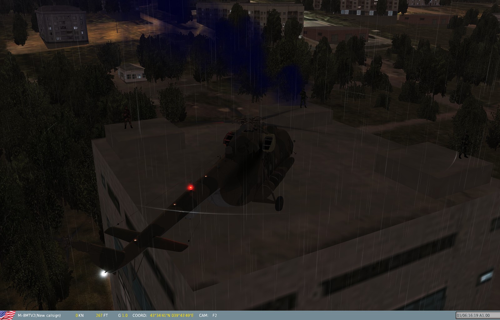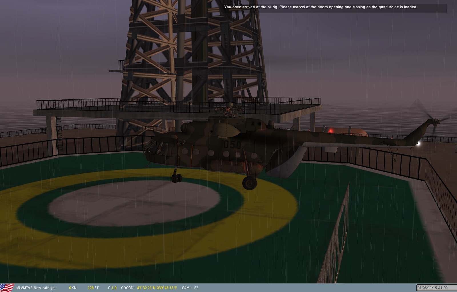 Land on an oil rig to pick up cargo, then land on top of a building to pick up some soldiers. Drop off the cargo and soldiers on the Oliver Hazzard Perry.