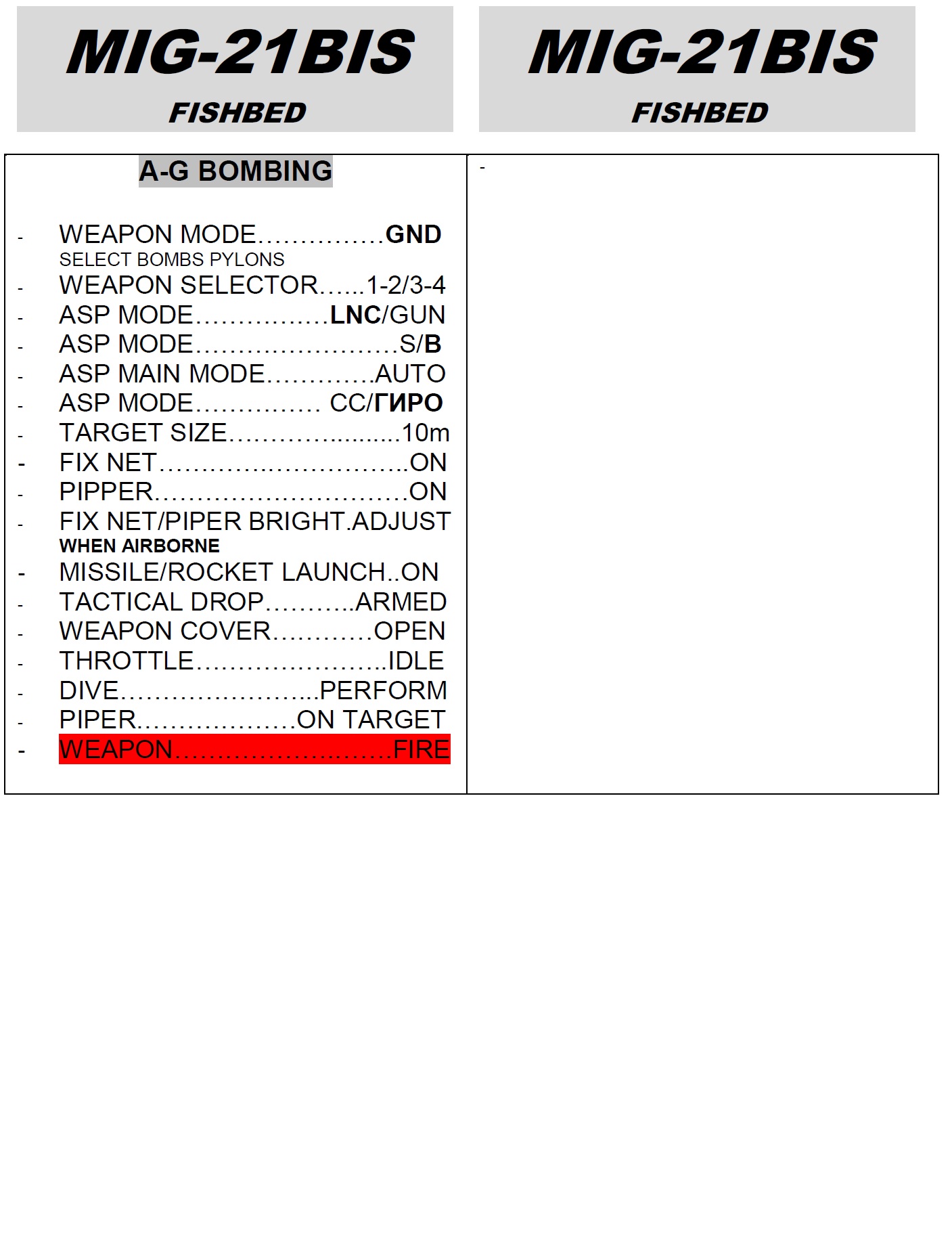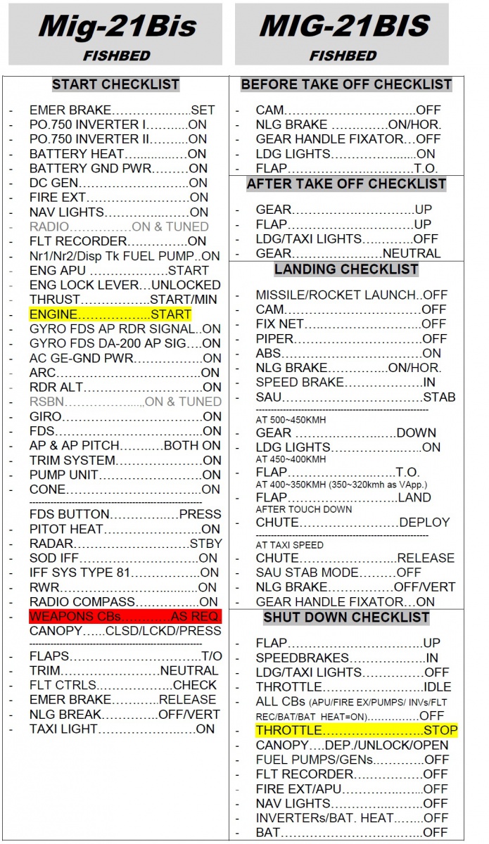 Far from the real one, but quick to get you flying. Complements the normal L-39 Quick Checklist. Depression for cannon/Pods included. Better format.