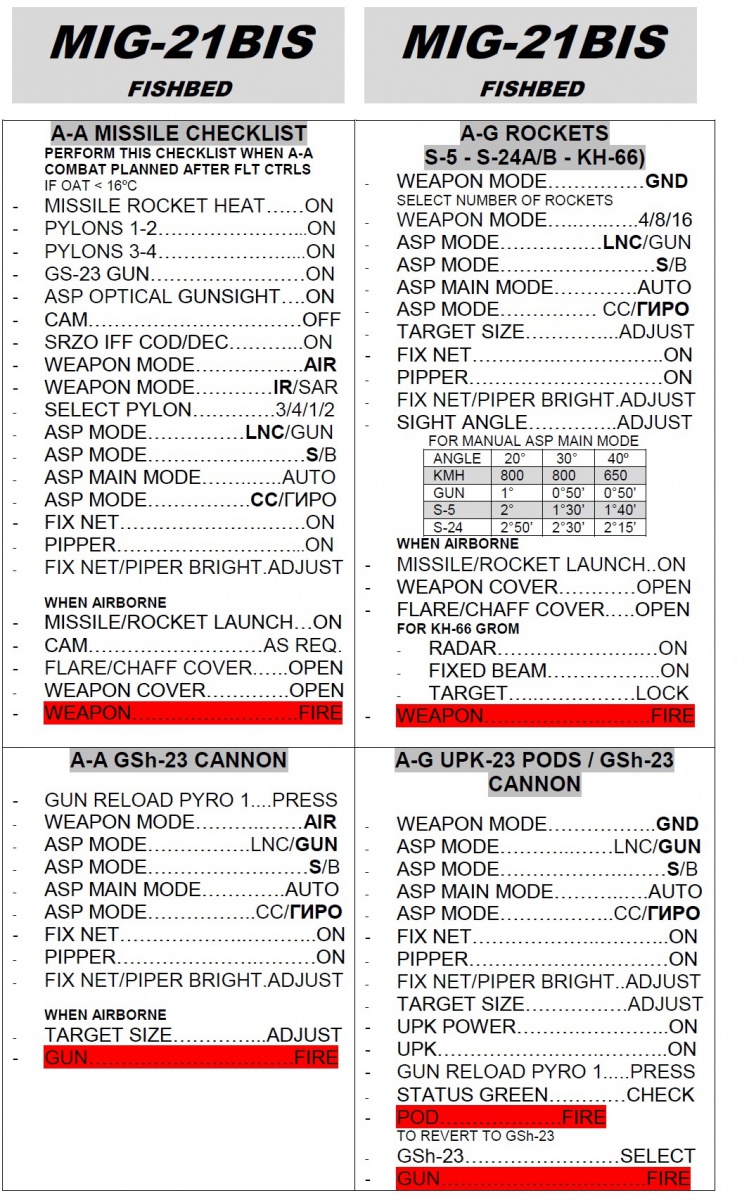 L-39C and L-39ZA Weapons Quick Checklist. (Update vs 1.1)