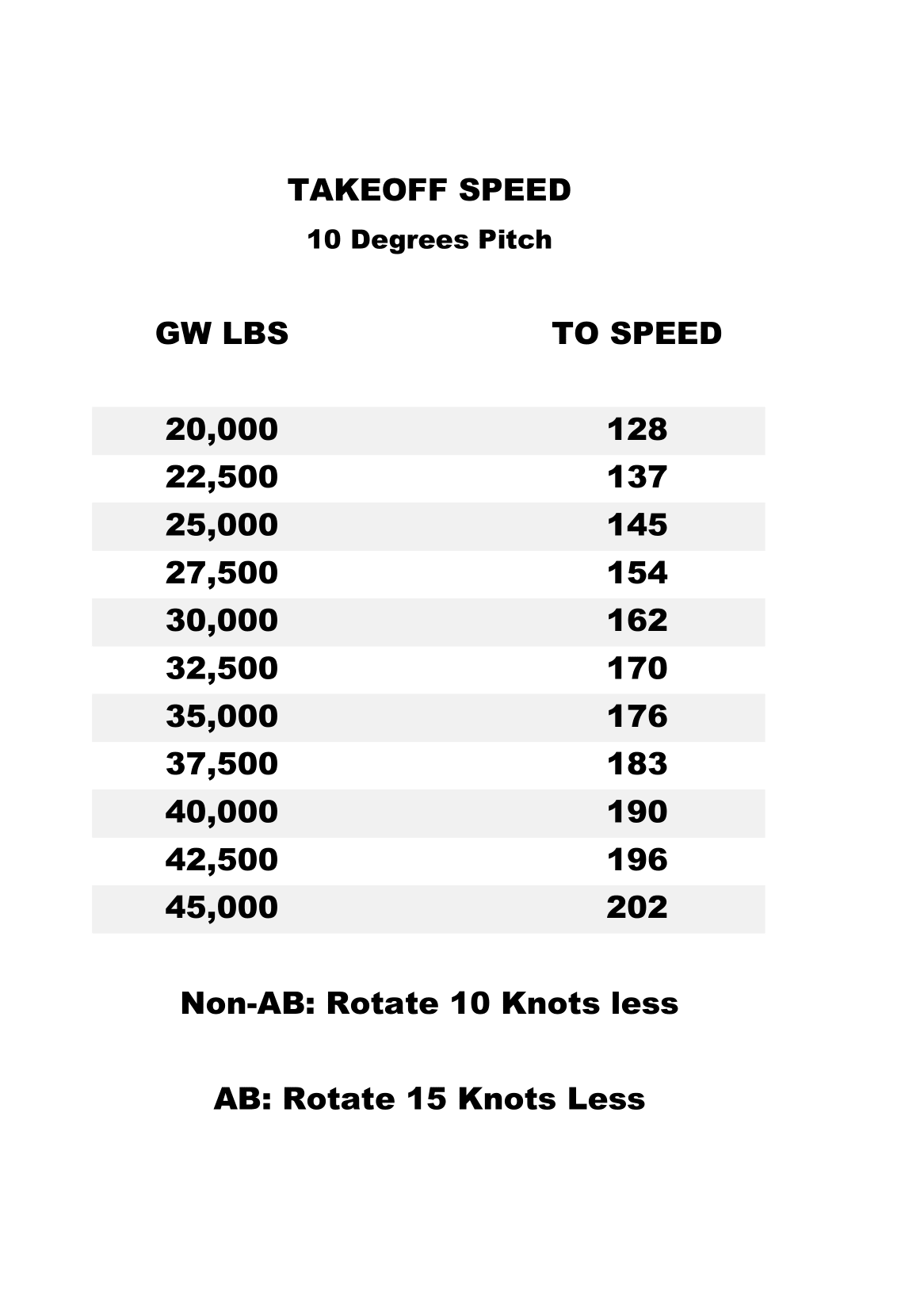 Just a quick reference for takeoff speed vs weight for Standard Day conditions for your kneeboard.