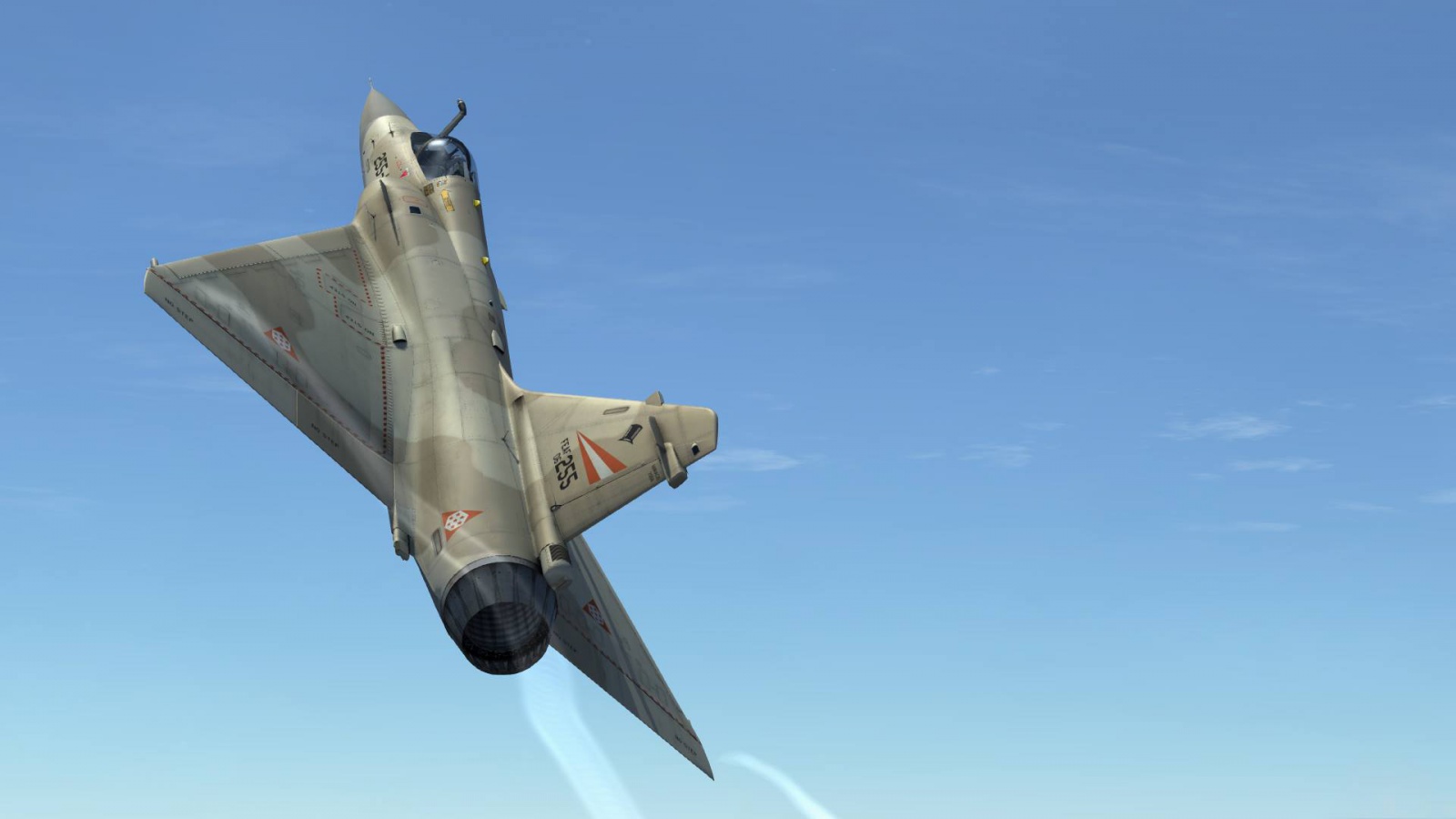 A Mirage belonging to the Free Erusean Air Force's aggressor squadron during the postwar period (specifically ~2009).  Made with the paintkit by frenchy/tacca.