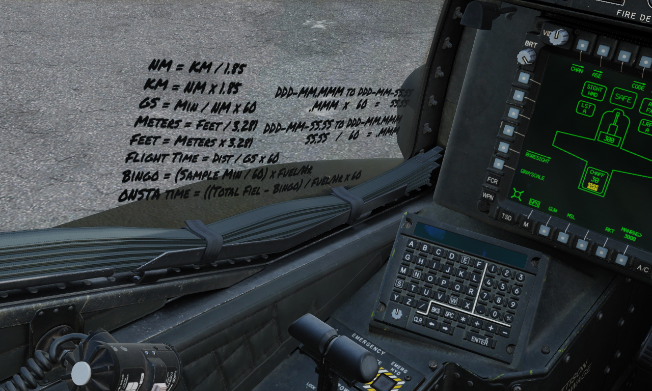 Reminders for George AI, In-Flight calculations, and some other stuff. Don't tell crew chief. I don't think they like all the stickers and permanent marker in either cockpit. SP and MP safe. Updated 21MAR2022