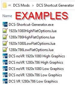 DCS Shortcut Generator is an app you can use to create unique shortcuts for DCS. This uniqueness comes in the forms of VR, Launcher, options luas, resolutions, icon images, or any combination thereof.