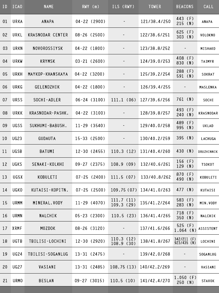 Данные аэродромов для планшета (RWY info for kneeboard)