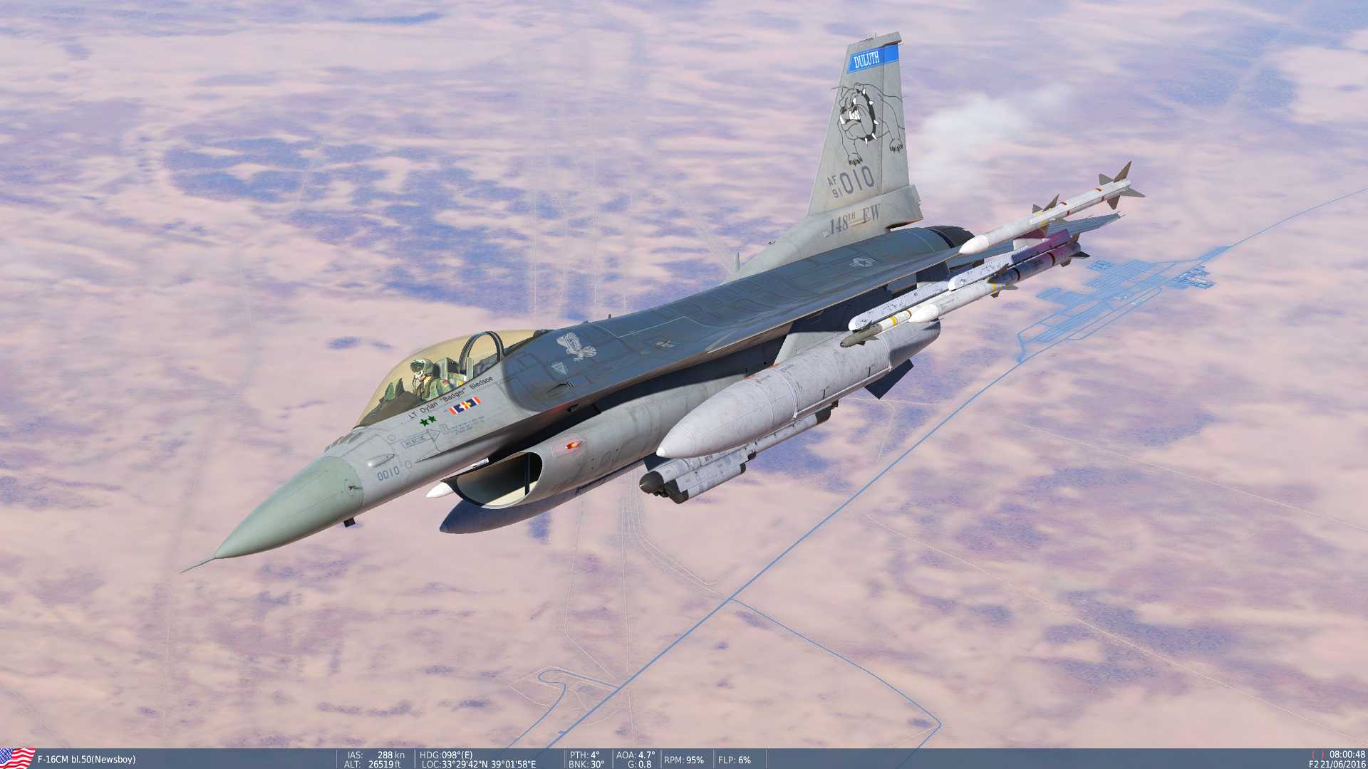 This is an F-16 skin i made for a friends birthday, it takes inspiration from the in game 179th Bulldogs skin but i have added victory markings, increased weathering, and a name under the canopy.