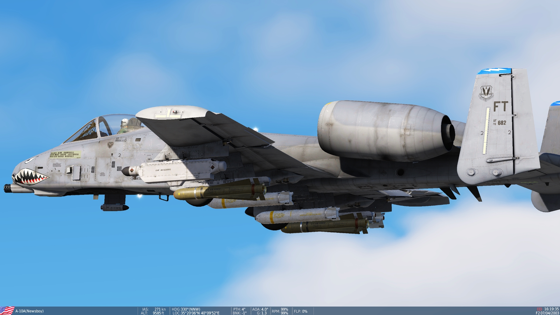 This is Kim Campbells A-10A from Operation Iraqi Freedom, on April 7, 2003 her A-10 was damaged by AAA over Baghdad, Iraq, she managed to fly it home in manual reversion and and land perfectly, and this skin is for anybody who wants to have the luck of The Killer Chick on their side.