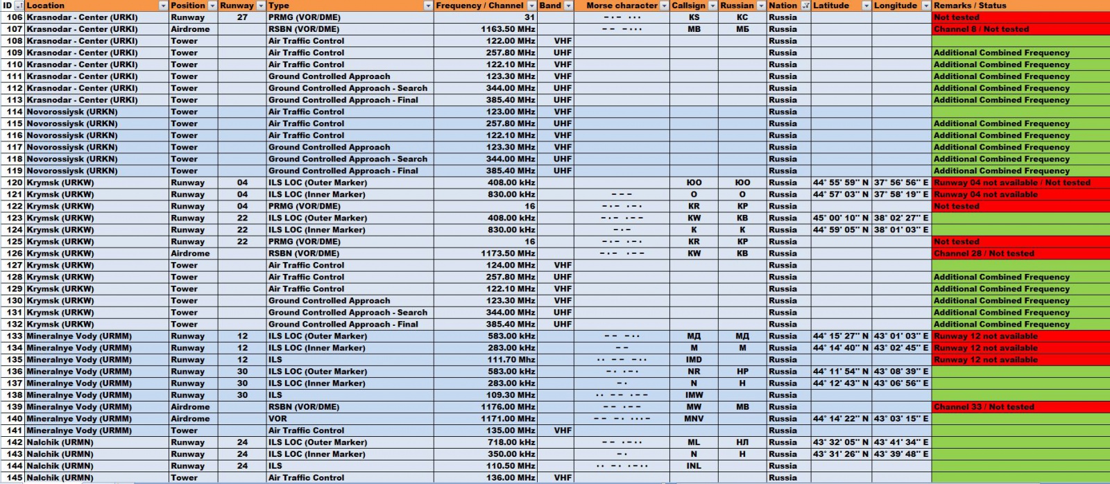 - PRMG and RSBN channels / frequencies for L-39 Albatros implemented