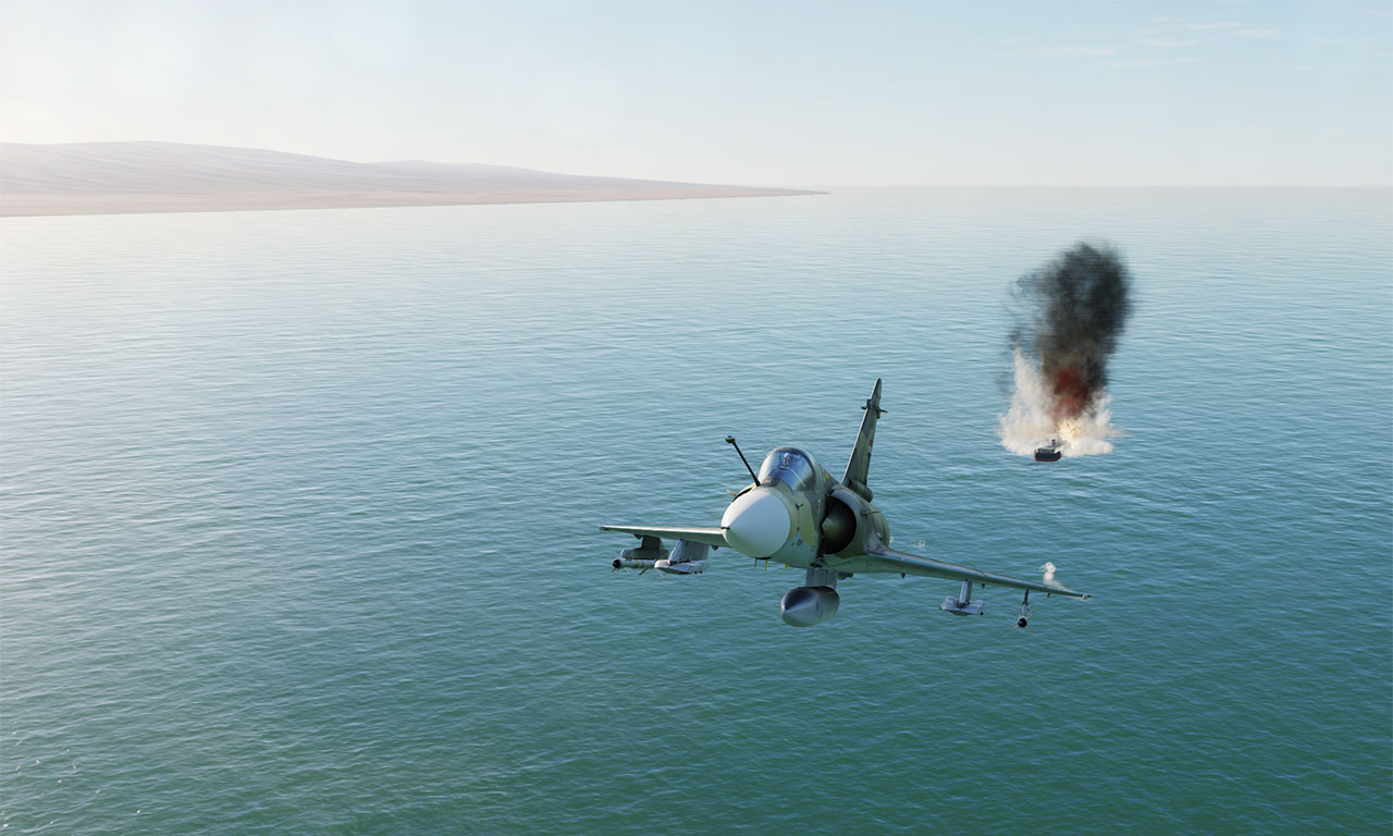 After successful destruction of two Iraqi oil rigs, the main task of IRIAF is now to provide support to the Iranian Navy. Two Iranian missile boats blockading Iraqi ports were attacked by Iraqi Osa class missile boats. In exchange of missiles, two Iraqi and one Iranian boats were sunk. IRIAF rushes to aid the remaining missile boat with F-4 Phantoms leading the strike, armed with Maverick missiles. Our flight of F-5Es is tasked with destruction of a nearby Iraqi SA-3 SAM site while the mighty F-14 Tomcat provides air cover.