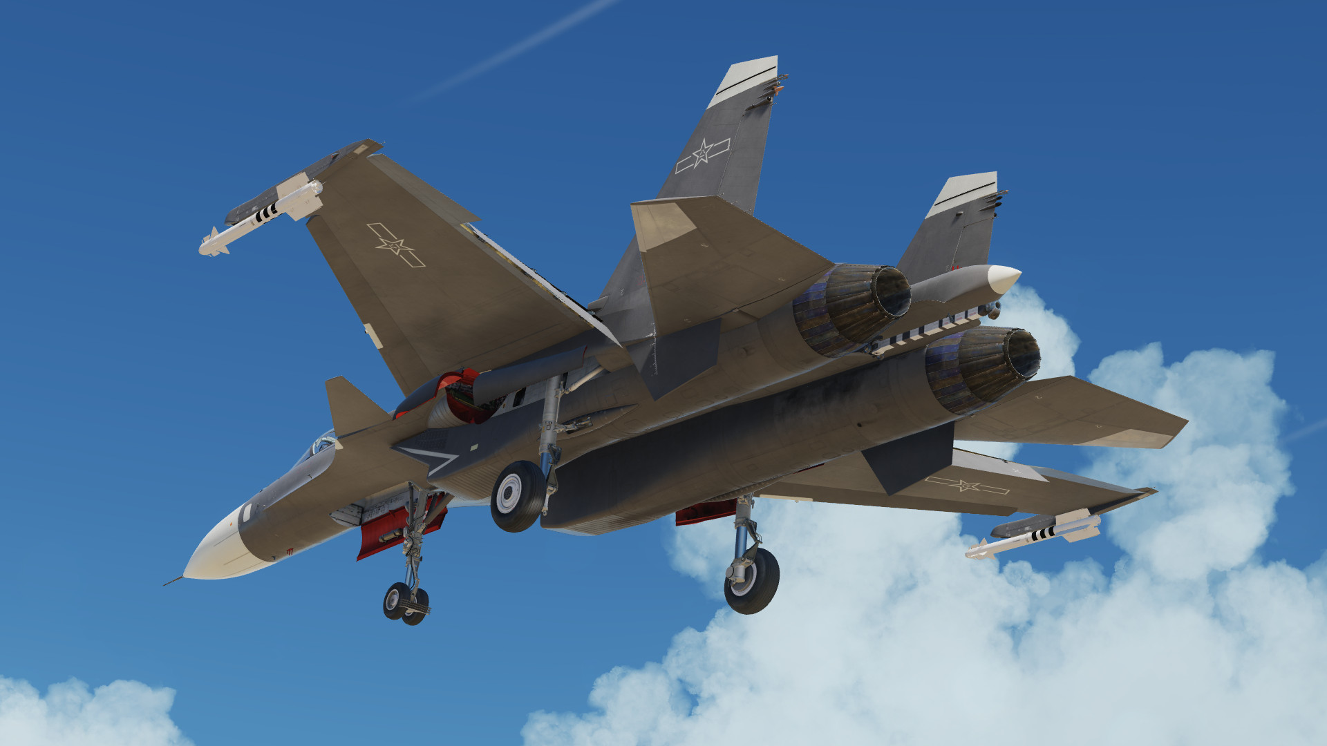China recently unveiled the J-15T, a carrier and catapult capable flanker. On paper, this may be the single most capable Naval Fighter in service today. More importantly to me, it looks damn good. There is going to be a flight demo at Zhuhai in a few days. This Skin features custom Roughmets, custom afterburners, custom engines, a fully custom nose (which i spent too much time on), some custom paint for weapons, and more custom details which you can also find on my skins that were added to the game recently. Enjoy!