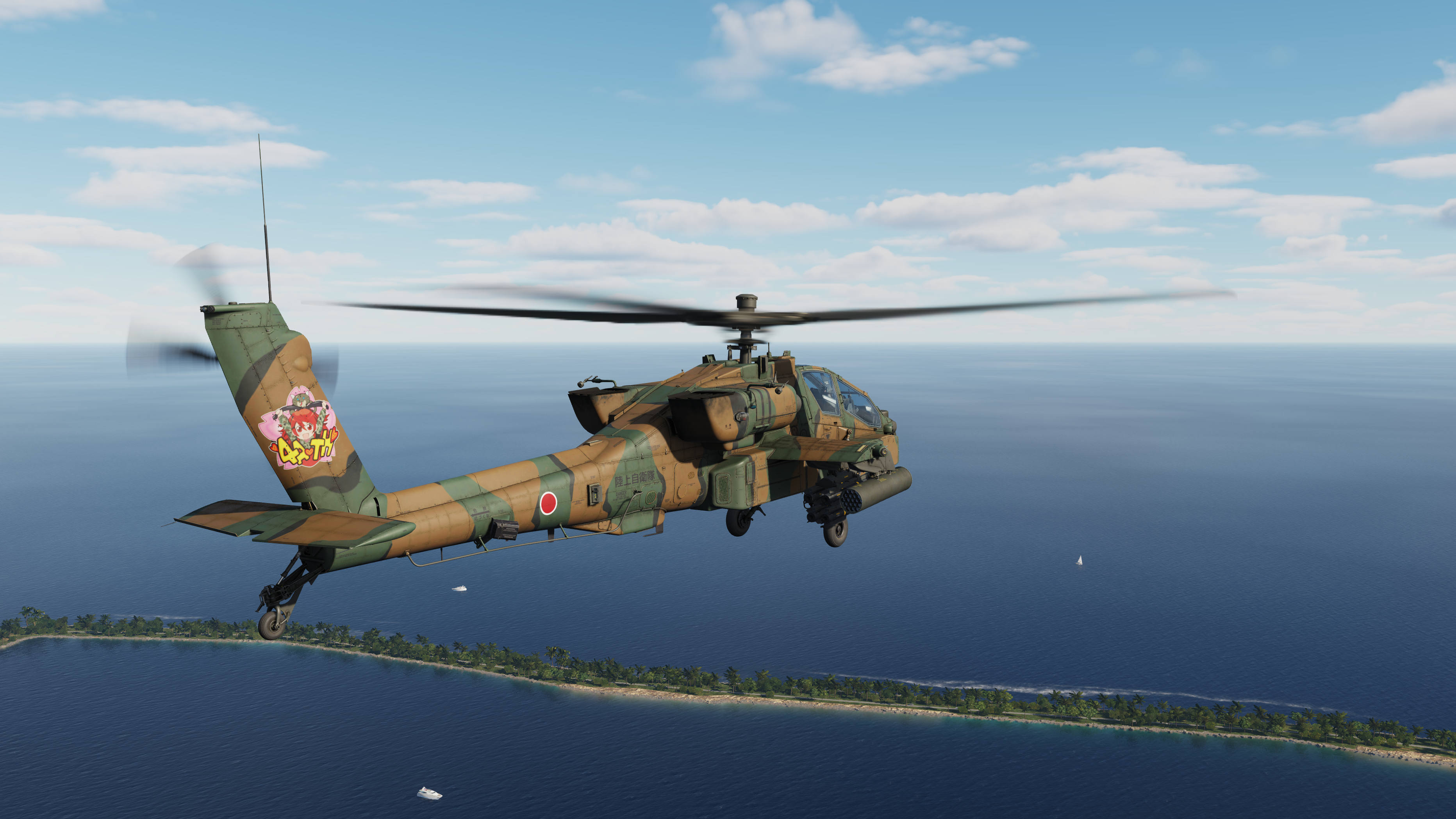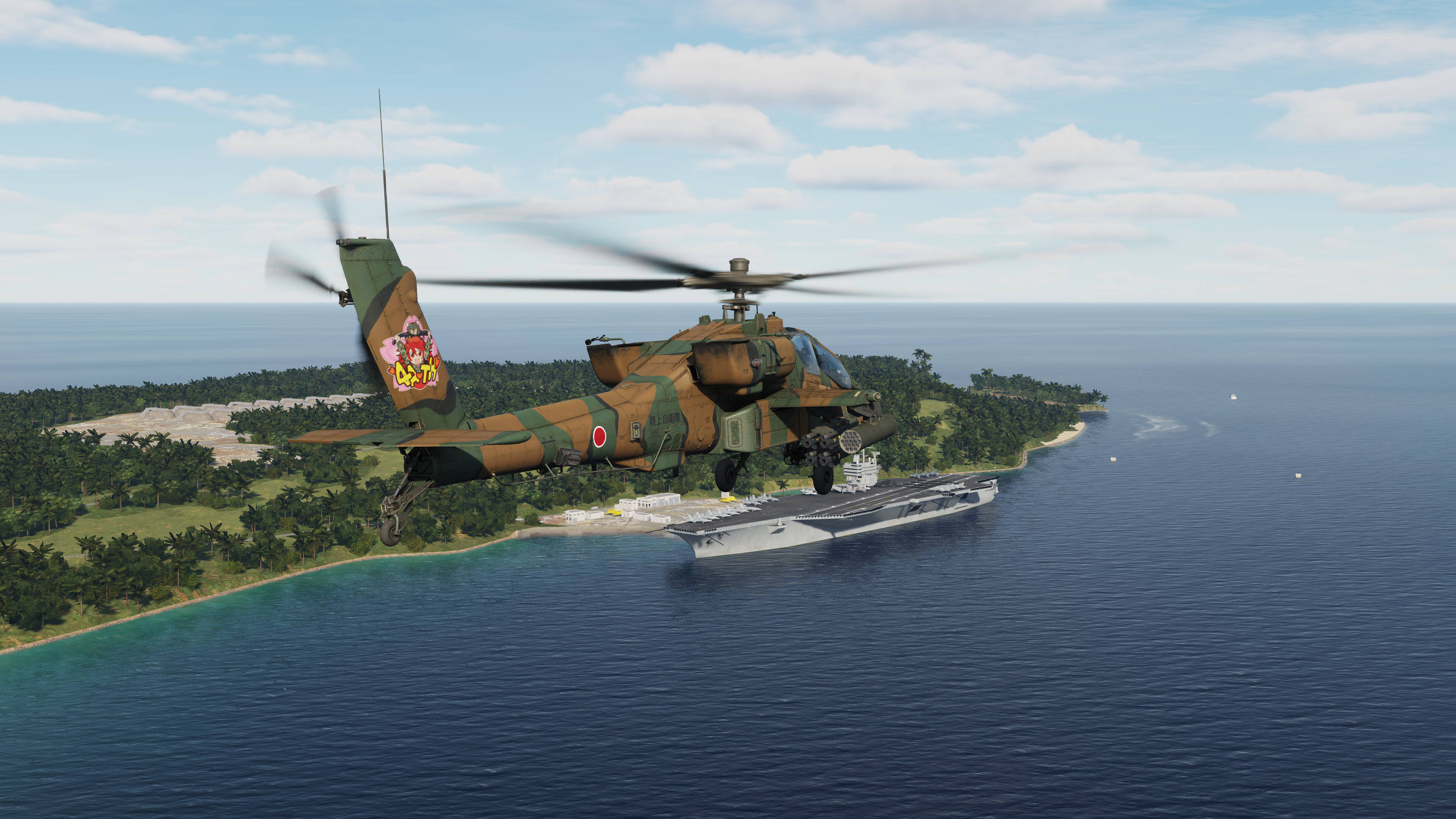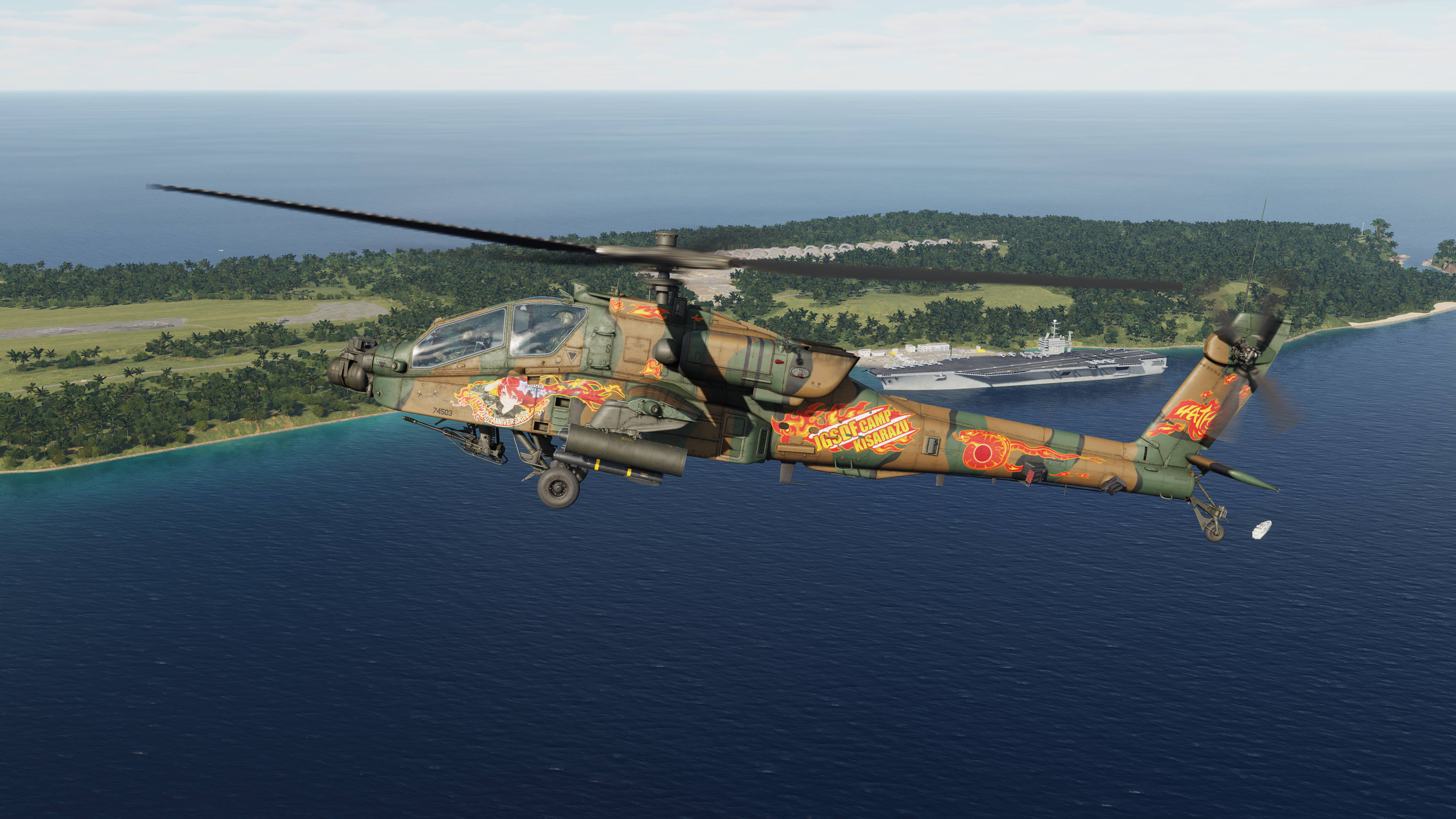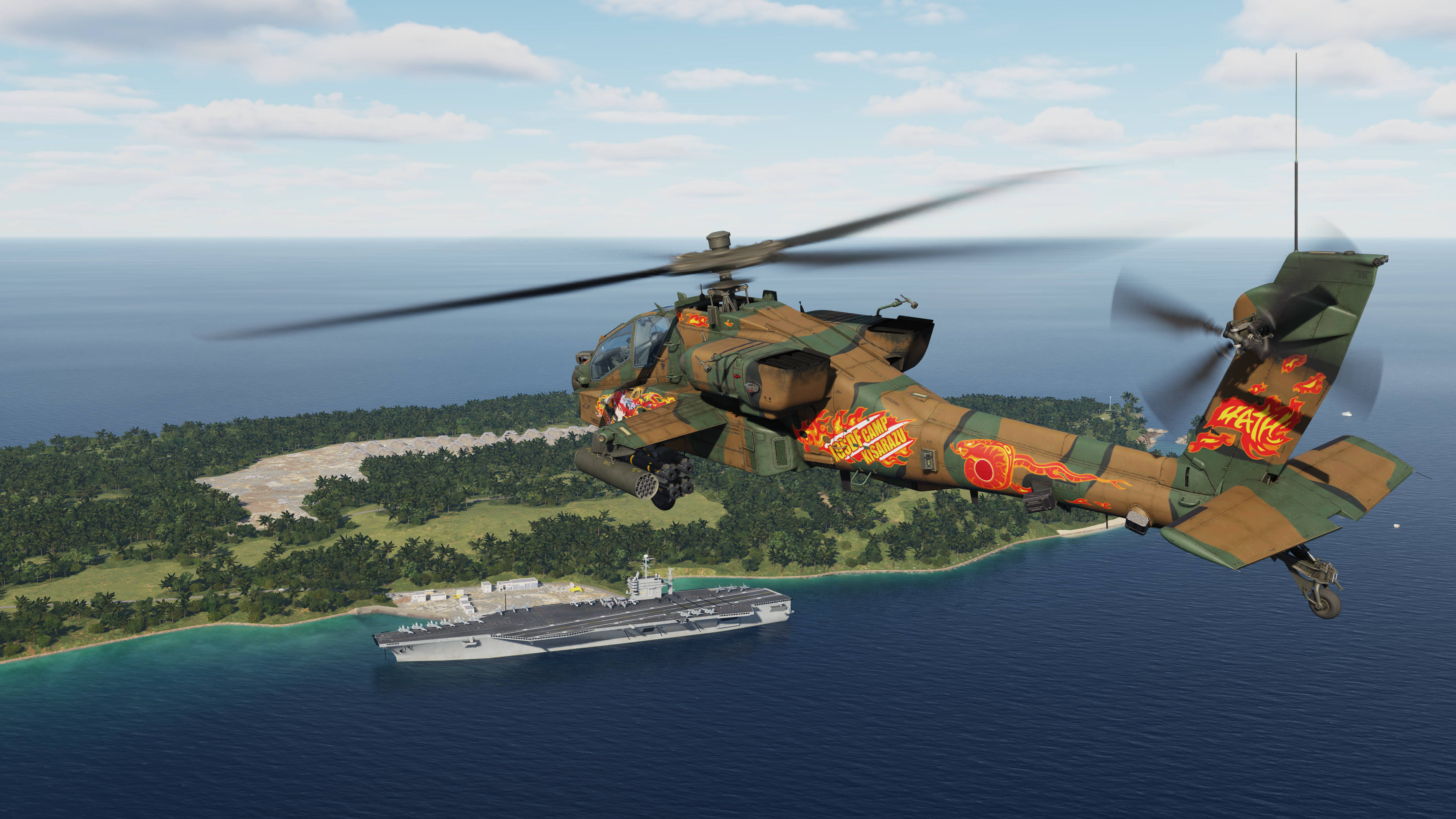 A semi-historical skin for the AH-64D based on the Kisarazu Akane 20th Anniversary Skin from the 4ATH Squadron on the AH-1S shown on the Kisarazu Airshow in 2012.