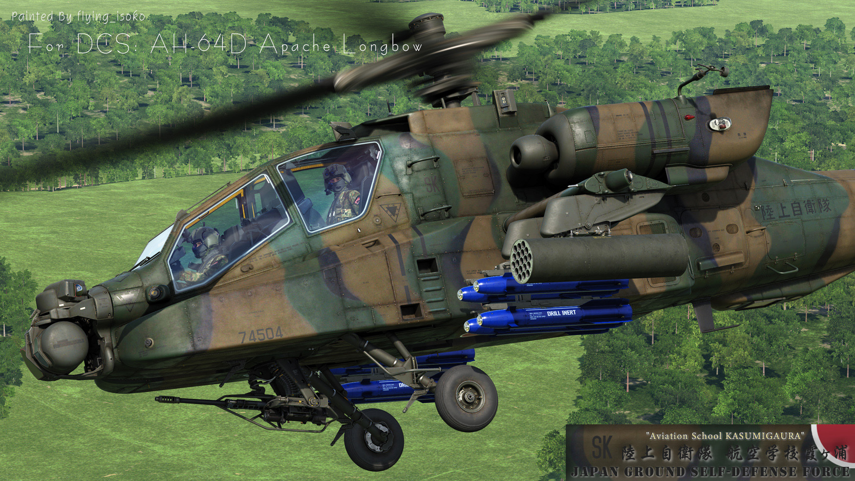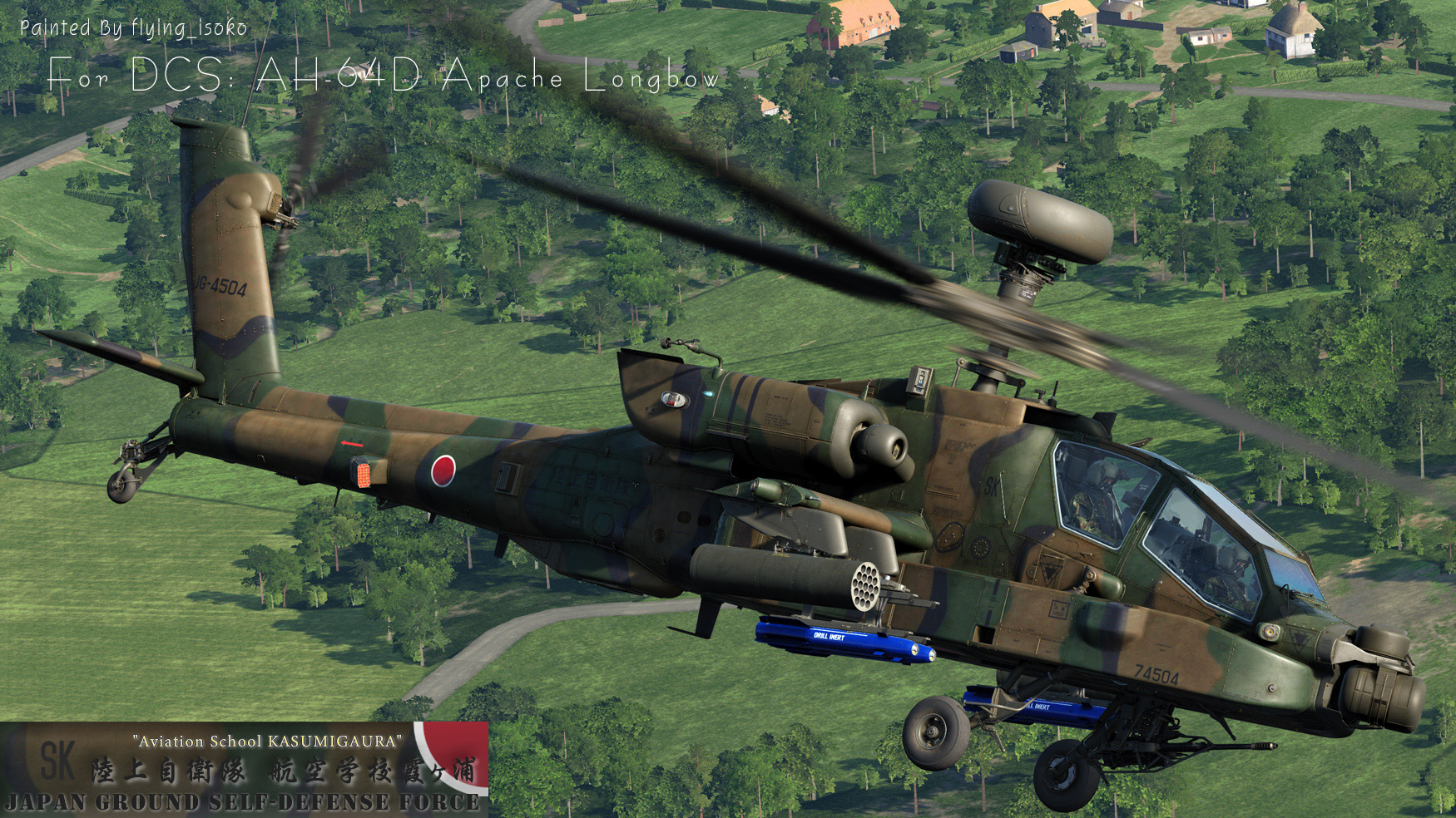 A semi-historical skin for the AH-64D based on the Kisarazu Akane 20th Anniversary Skin from the 4ATH Squadron on the AH-1S shown on the Kisarazu Airshow in 2012.