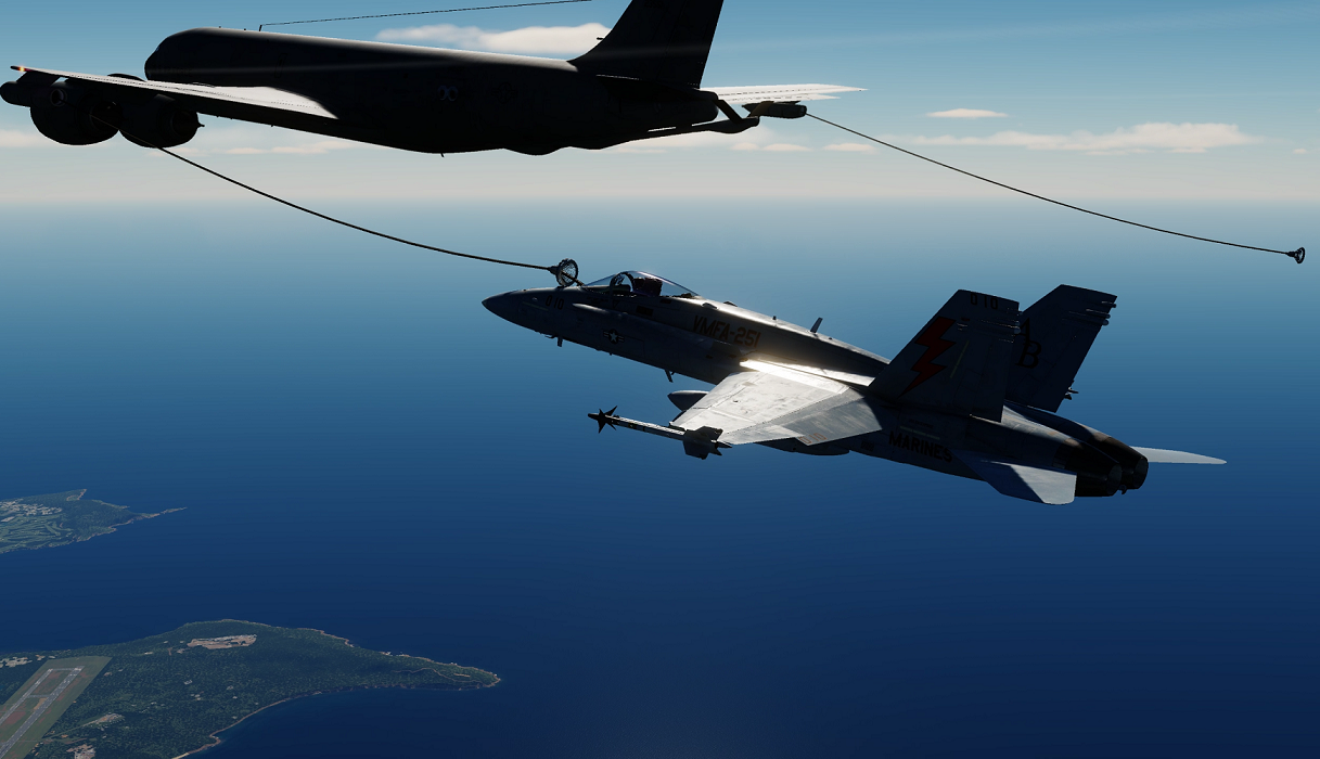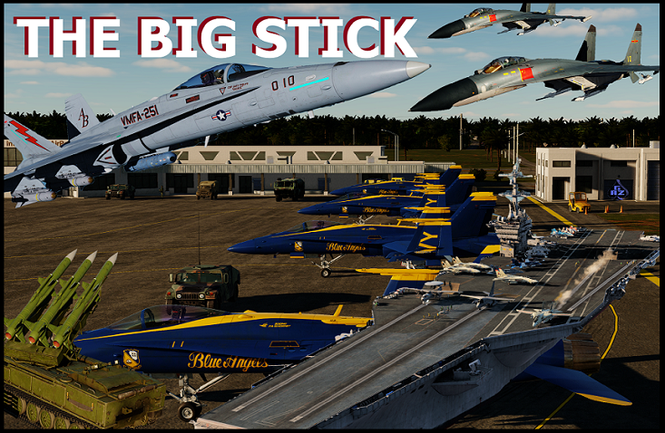 7:00 Guam Mariana Islands. Supercarrier CVN-71 Theodore Roosevelt aka "The Big Stick". You're heading North from Hagatna Bay to the Philippine Sea & have received information concerning a situation developing in the Northern Mariana Island of Saipan. Our Predator has sent back images of an enemy Militia group that have infiltrated & taken over the Airport. They have AAA units set up & also a small armoured group has been observed patrolling the area. It's reported that embedded within this group are trucks transporting weapons & equipment to a Transport plane they have commandeered. Now, coinciding with this & more of a concern is that our AWACS has reported two enemy Su-27 Flankers snooping around Rota Island & are fully loaded with Air to Air & Air to Ground ordnance. We're very concerned about this as our Blue Angels team is on the ground at Rota at the moment undergoing maintenance. More information in the Briefing & your Kneeboard