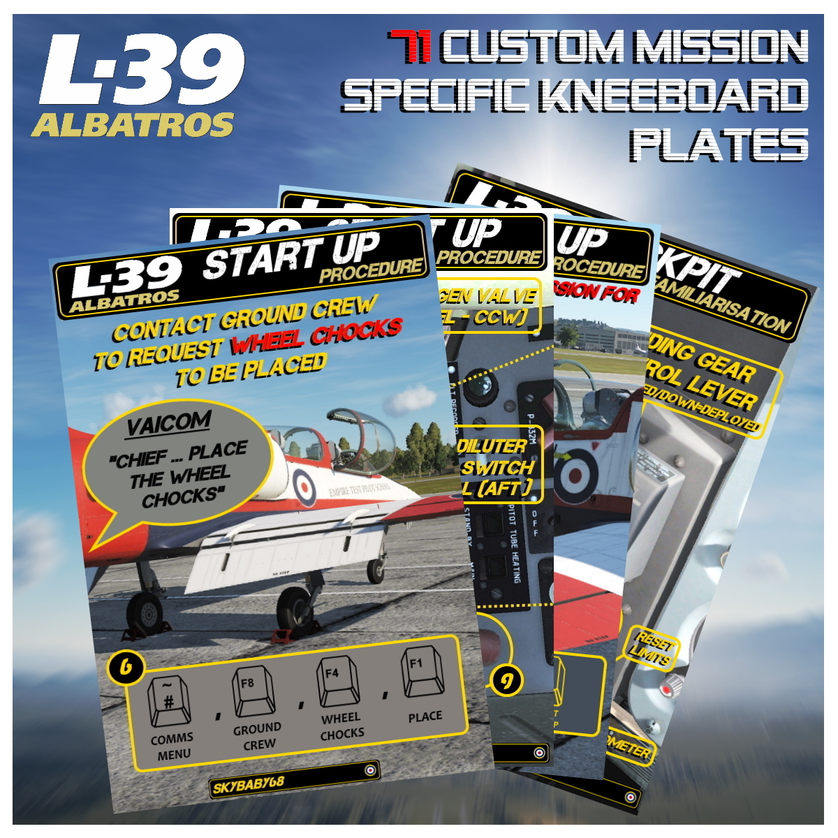 Includes 71 custom mission specific and highly detailed kneeboard plates, designed for easy viewing from within VR; custom voiceovers from the instructor in the rear seat, and one RAF Empire Test Pilots School L-39C Skin (by Blackbeard).<br /><br /><br /><br /><br />