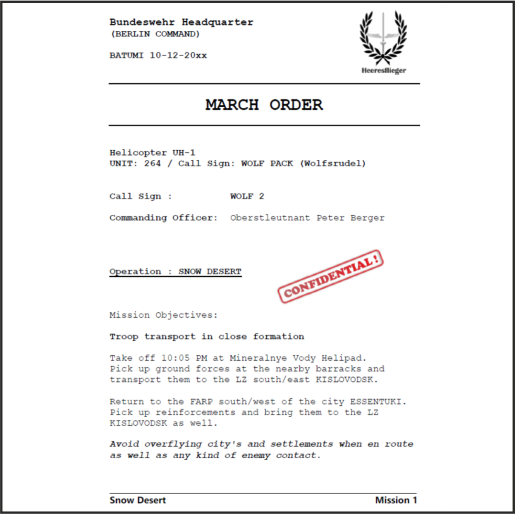 The Germans, based at Mineralnye Vody Airport and in the surrounding area get more and more under pressure and involved. They need to become an active player for there on security while the Russian army is fighting elsewhere.